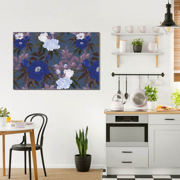 Glas Magnettafel im Querformat Blaue und weiße Rosen