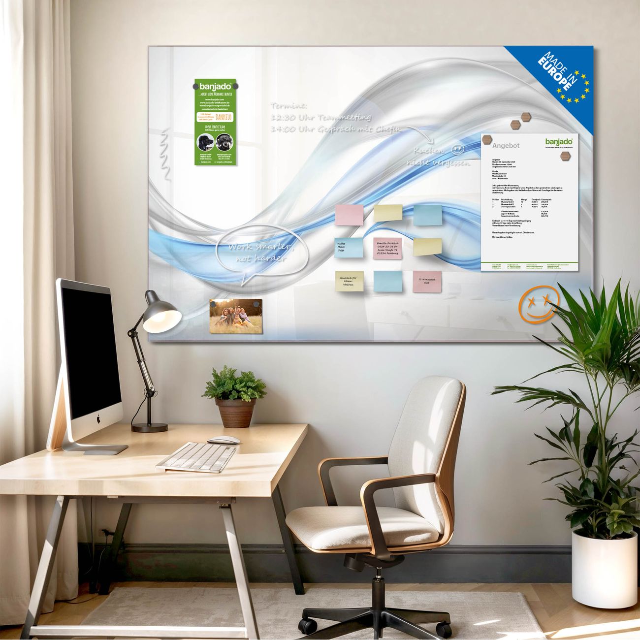 Jede Glas Magnettafel wird in unserer Werkstatt von Hand gefertigt und sorgfältig geprüft. So erhalten Sie ein echtes Qualitätsprodukt, das Funktion und Ästhetik perfekt vereint.?? Warum banjado?