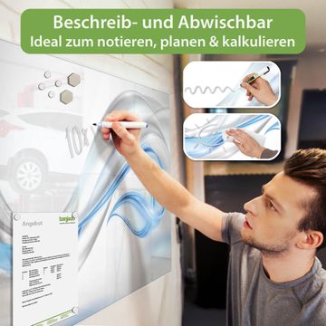 Gefertigt aus gehärtetem Sicherheitsglas mit einer magnetischen Rückwand aus Stahl überzeugt diese Magnettafel durch Stabilität und Langlebigkeit. Die Oberfläche bleibt dauerhaft brillant und pflegeleicht, selbst bei täglicher Nutzung.