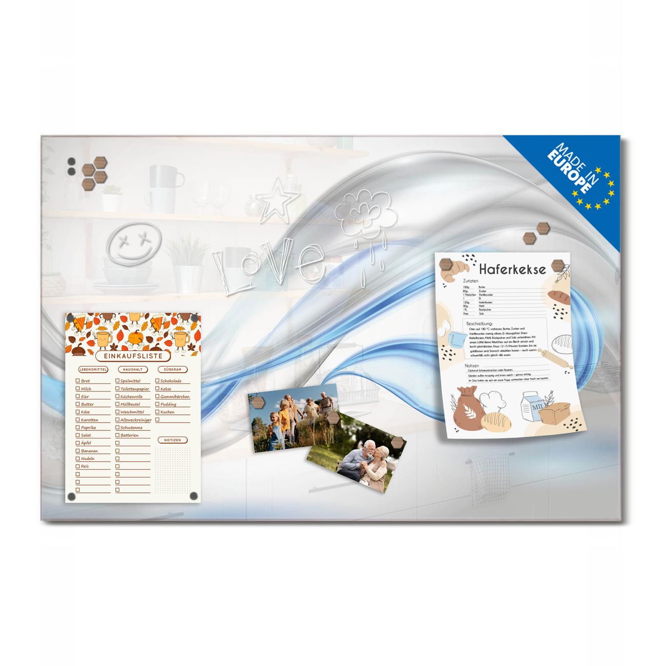 Ein Stück Design, das Ihren Alltag organisiert. Schreiben, heften, inspirieren - alles an einem Ort. Qualität, die man spürt. Montage leicht gemacht. Handwerk mit Herz - veredelt in Sachsen. Einzigartiges Design mit Motiv Motiv Blauer Schleier Beschreibbare Glasoberfläche, leicht zu reinigen Starke Magnetkraft durch Stahlrückwand Inklusive 4 Neodym-Magneten Flexible Montageoptionen Handveredelt in Sachsen - Qualität, die bleibt