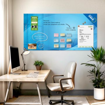 Auf der glatten Glasoberfläche lassen sich Termine, Rezepte oder Notizen ganz einfach mit Kreidestiften festhalten und rückstandslos entfernen. Starke Neodym-Magnete halten Ihre wichtigsten Erinnerungen sicher an Ort und Stelle. So entsteht Ihre ganz persönliche Ideenwand - jeden Tag neu.