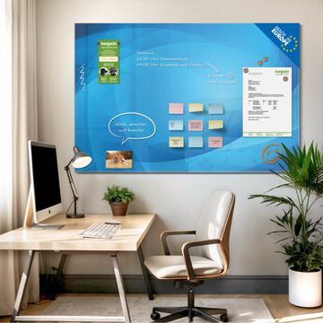 Auf der glatten Glasoberfläche lassen sich Termine, Rezepte oder Notizen ganz einfach mit Kreidestiften festhalten und rückstandslos entfernen. Starke Neodym-Magnete halten Ihre wichtigsten Erinnerungen sicher an Ort und Stelle. So entsteht Ihre ganz persönliche Ideenwand - jeden Tag neu.