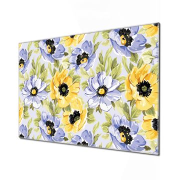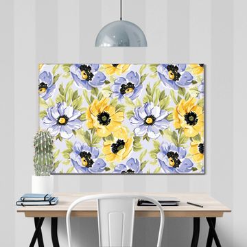 Glas Magnettafel im Querformat Blüten Gelb Violett