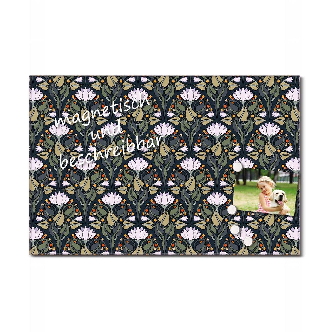 Glas Magnettafel im Querformat Blume auf Grün