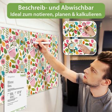Die banjado Glas Magnettafel mit dem Motiv Motiv Blumen Naiv verbindet Funktionalität mit Stil. Sie ersetzt das Zettelchaos durch klare Strukturen und bringt dabei eine warme, natürliche Atmosphäre in Ihr Zuhause. Ob im Büro, in der Küche oder im Eingangsbereich - dieses Design-Board zieht Blicke an und sorgt für Ordnung mit Charakter.