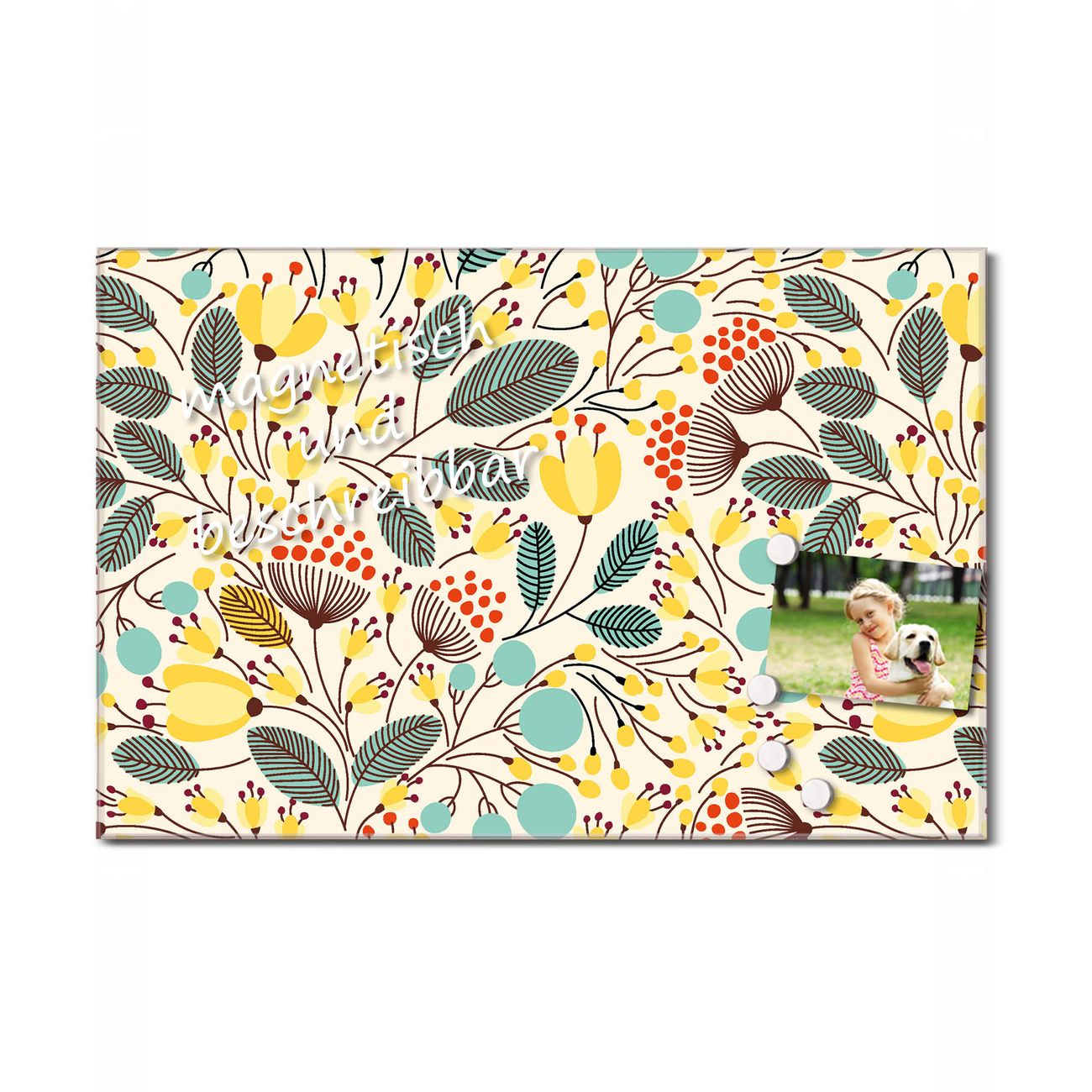 Glas Magnettafel im Querformat Blumen Blaue Blätter