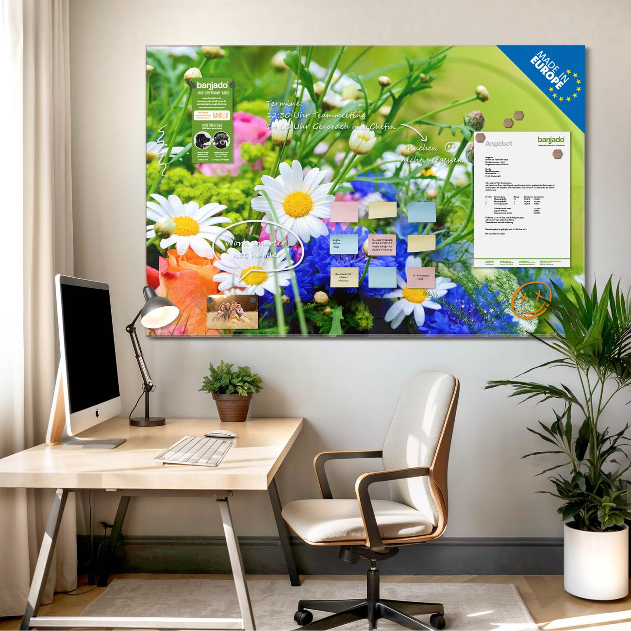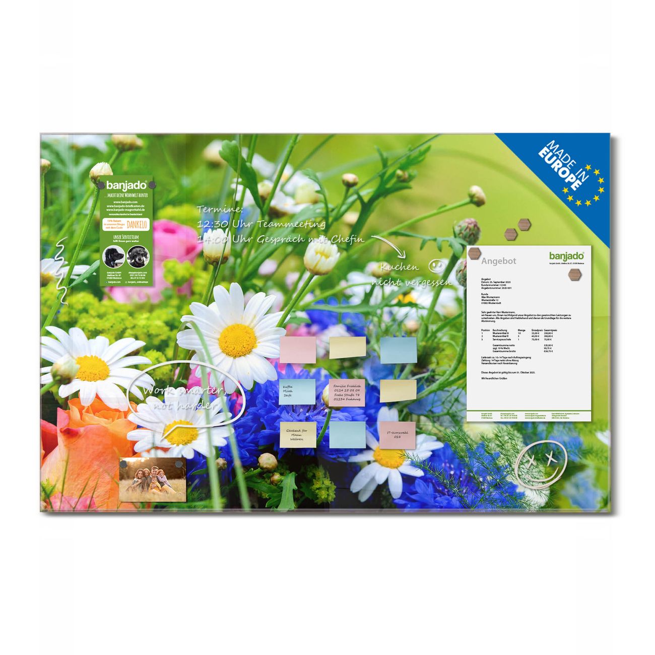 Die banjado Glas Magnettafel mit dem Motiv Motiv Blumenstrauß verbindet Funktionalität mit Stil. Sie ersetzt das Zettelchaos durch klare Strukturen und bringt dabei eine warme, natürliche Atmosphäre in Ihr Zuhause. Ob im Büro, in der Küche oder im Eingangsbereich - dieses Design-Board zieht Blicke an und sorgt für Ordnung mit Charakter.