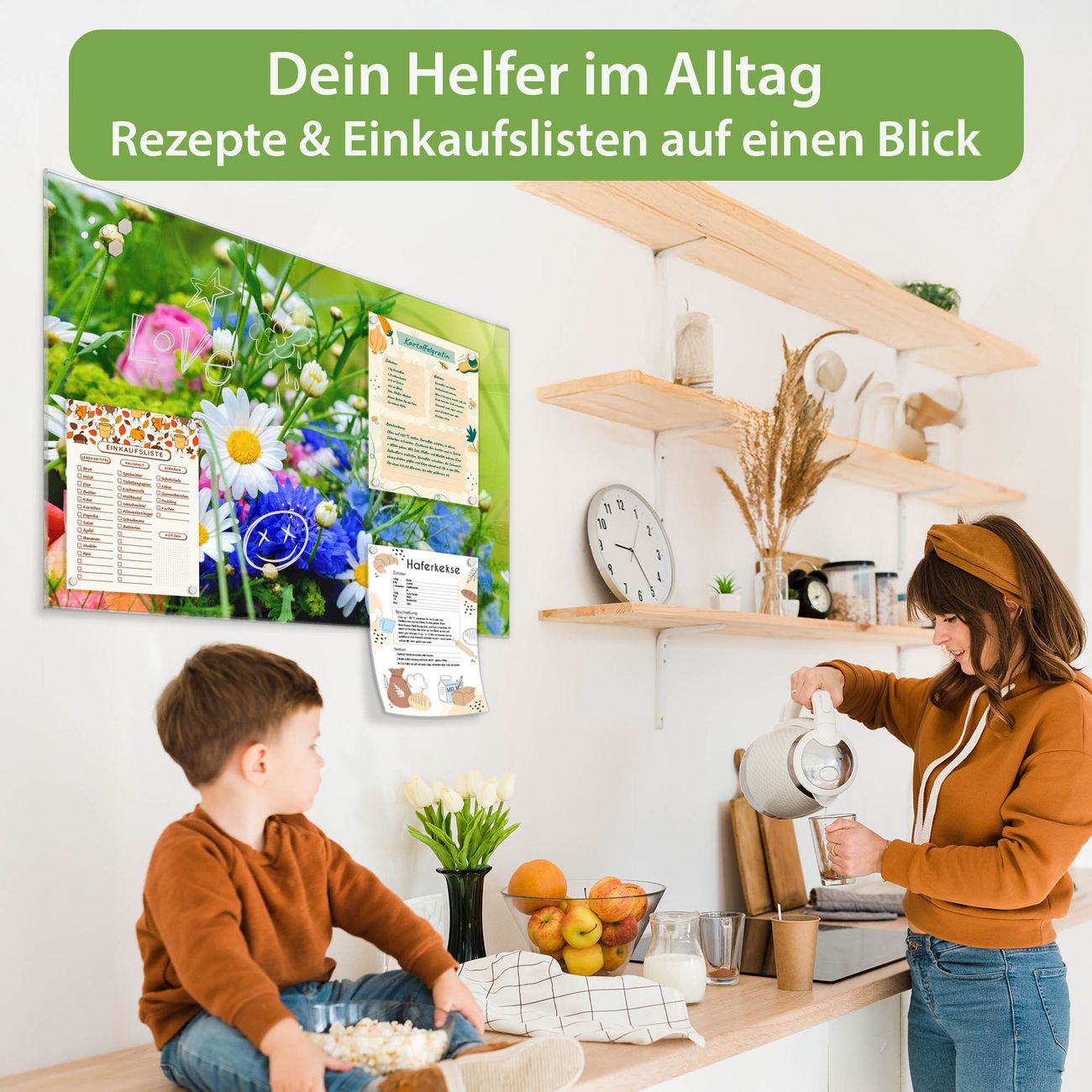 Ein Stück Design, das Ihren Alltag organisiert. Schreiben, heften, inspirieren - alles an einem Ort. Qualität, die man spürt. Montage leicht gemacht. Handwerk mit Herz - veredelt in Sachsen. Einzigartiges Design mit Motiv Motiv Blumenstrauß Beschreibbare Glasoberfläche, leicht zu reinigen Starke Magnetkraft durch Stahlrückwand Inklusive 4 Neodym-Magneten Flexible Montageoptionen Handveredelt in Sachsen - Qualität, die bleibt