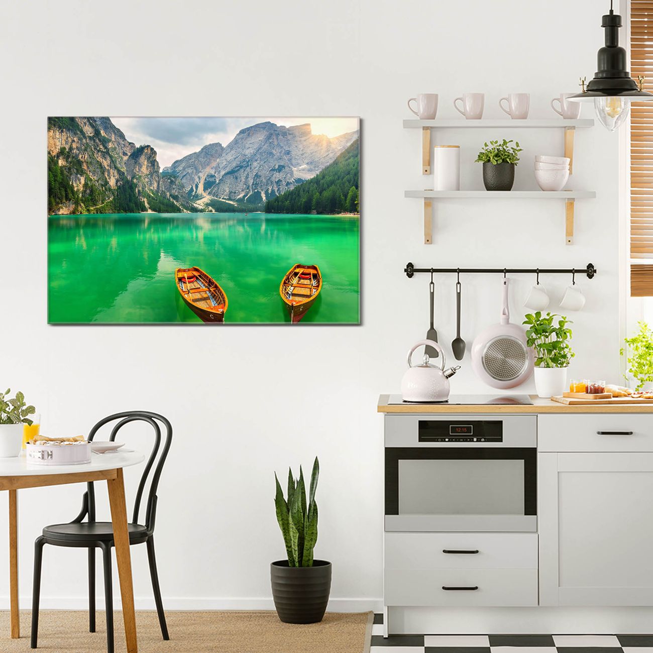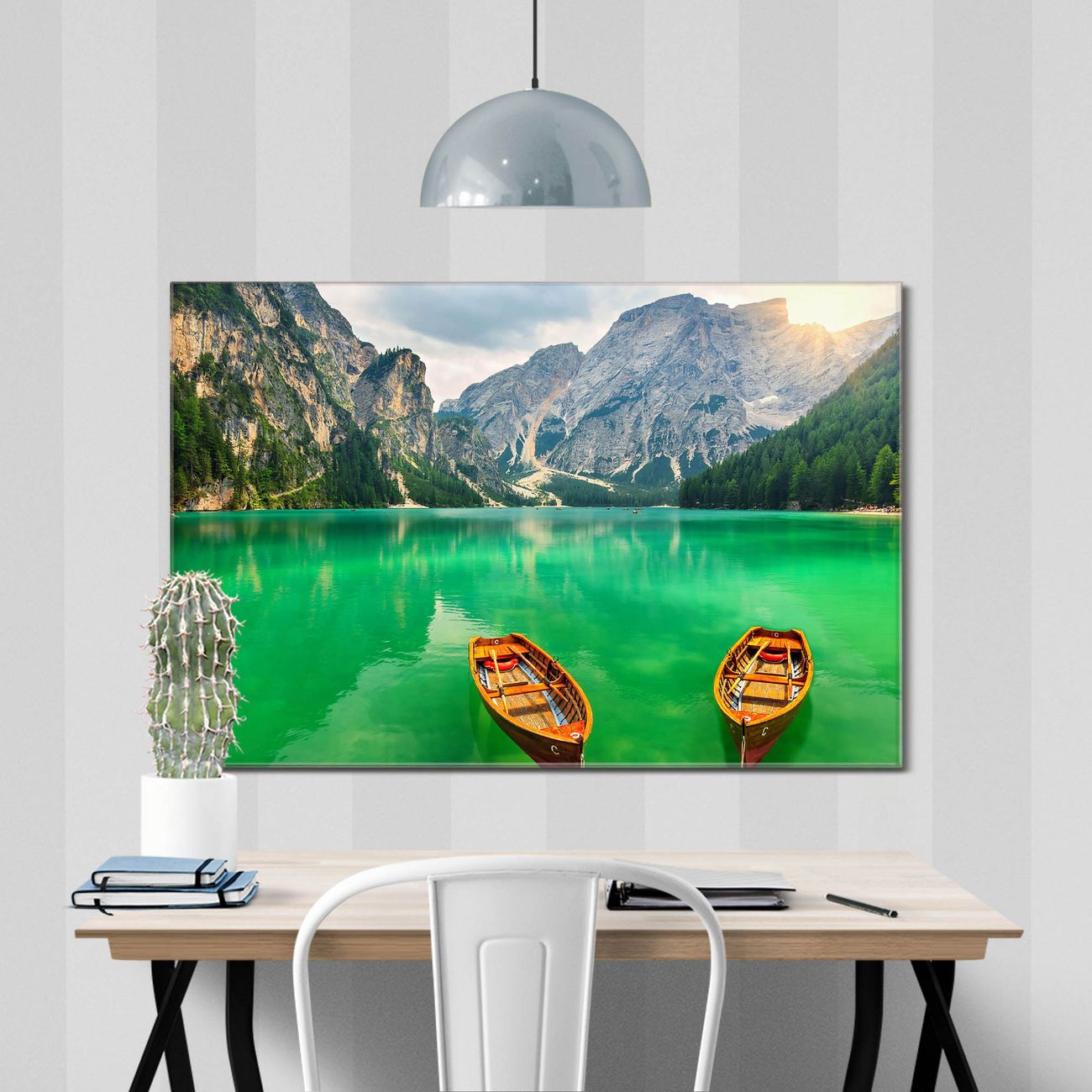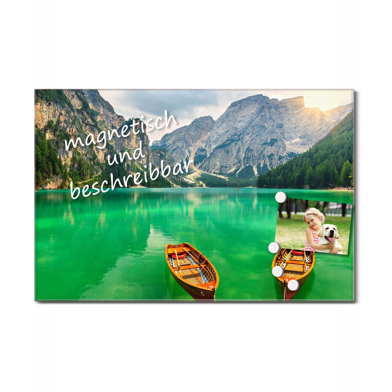 Glas Magnettafel im Querformat Boote Dolomiten