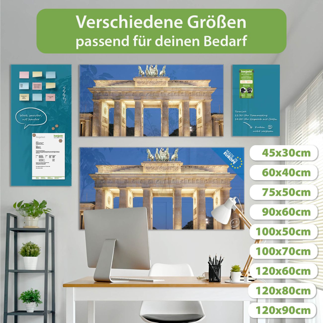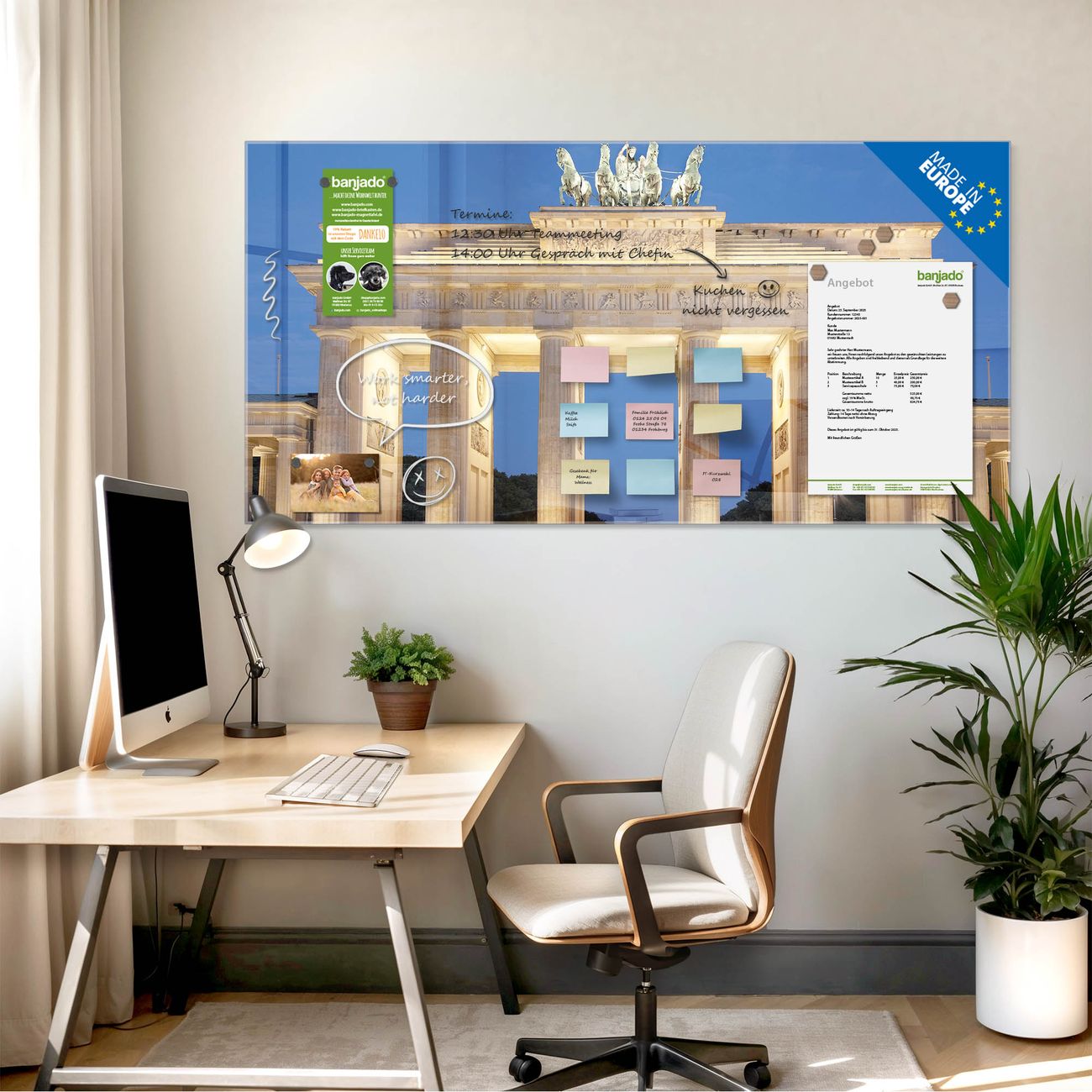 Jede Glas Magnettafel wird in unserer Werkstatt von Hand gefertigt und sorgfältig geprüft. So erhalten Sie ein echtes Qualitätsprodukt, das Funktion und Ästhetik perfekt vereint.?? Warum banjado?