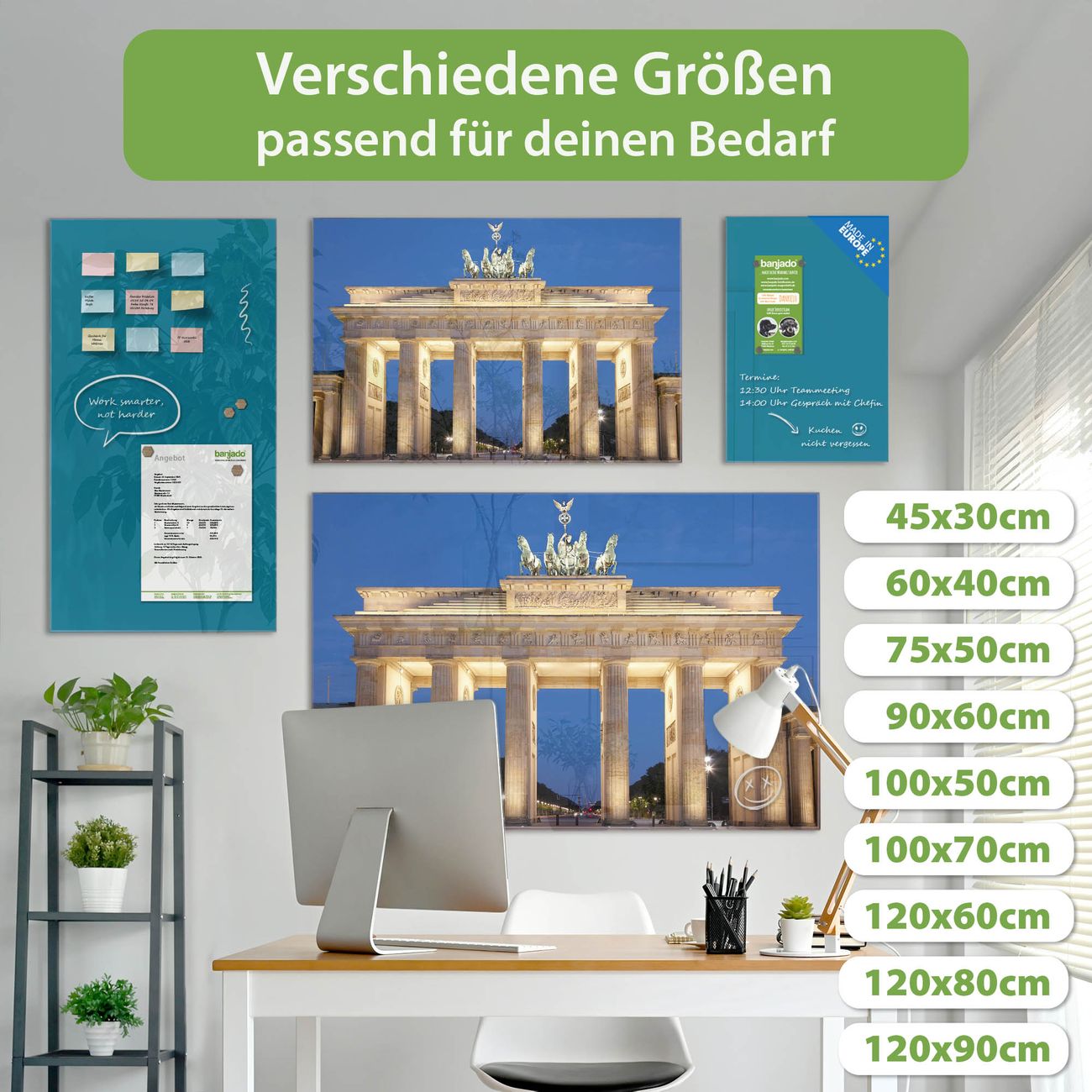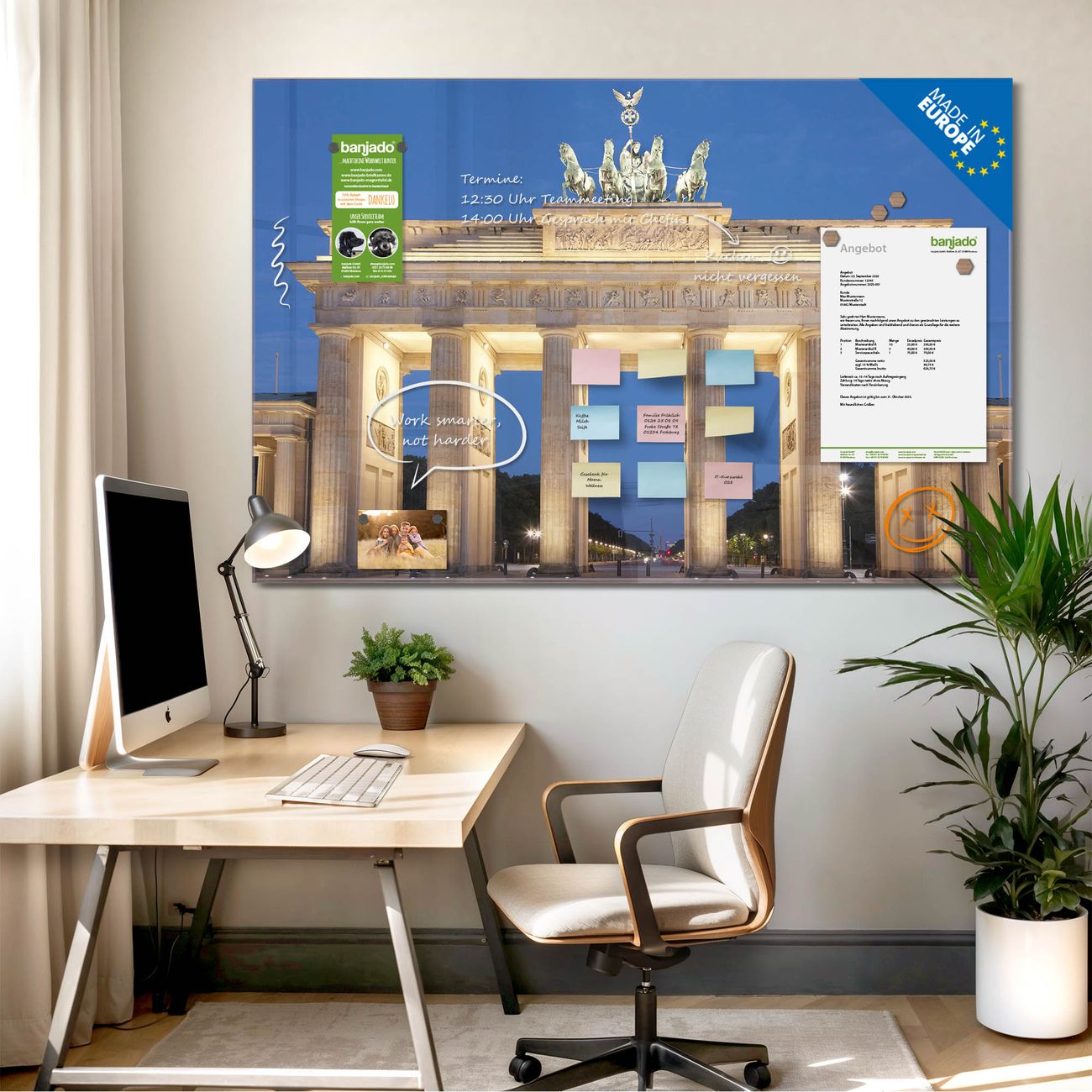 Die banjado Glas Magnettafel mit dem Motiv Motiv Brandenburger Tor 2 verbindet Funktionalität mit Stil. Sie ersetzt das Zettelchaos durch klare Strukturen und bringt dabei eine warme, natürliche Atmosphäre in Ihr Zuhause. Ob im Büro, in der Küche oder im Eingangsbereich - dieses Design-Board zieht Blicke an und sorgt für Ordnung mit Charakter.