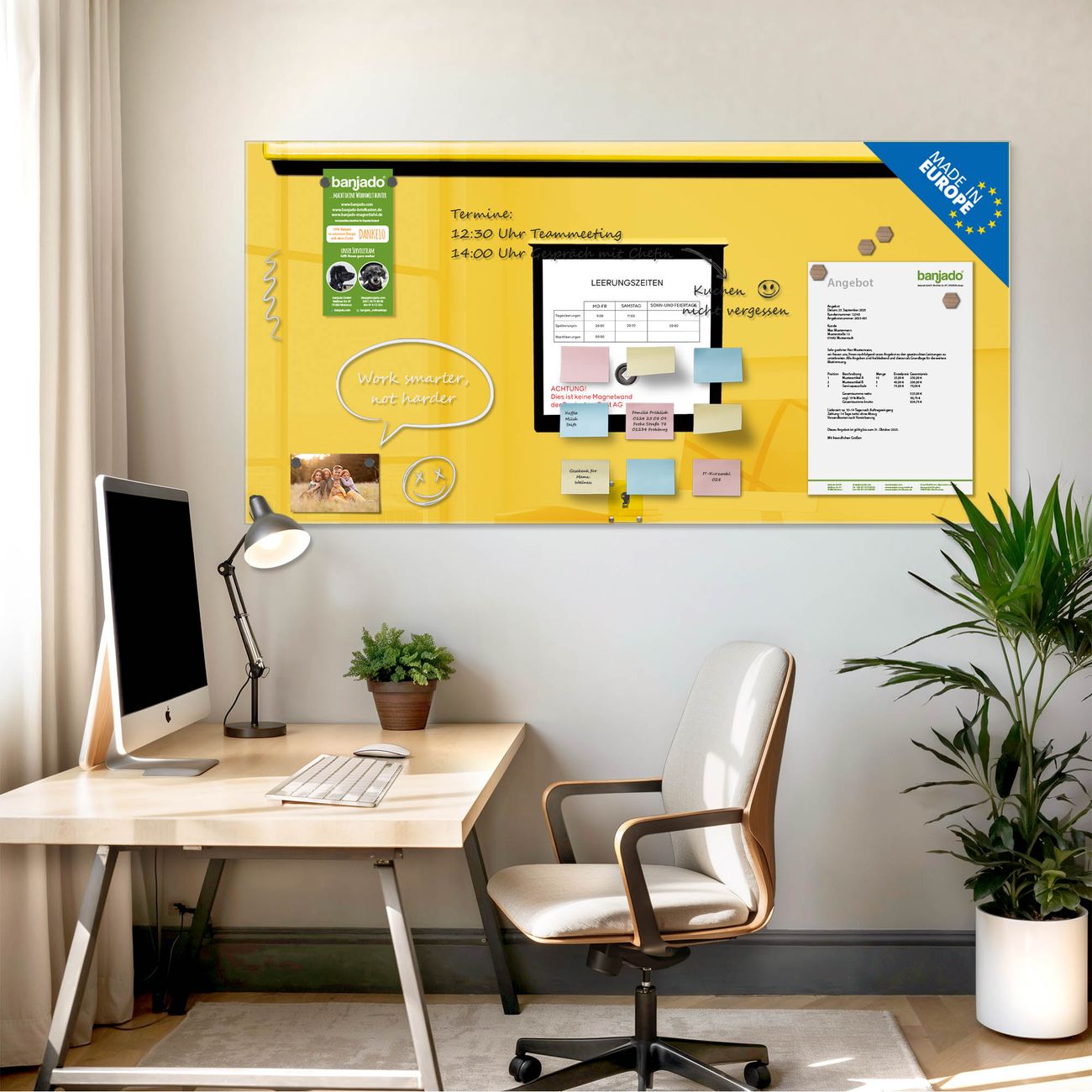 Die banjado Glas Magnettafel mit dem Motiv Motiv Briefkasten Gelb verbindet Funktionalität mit Stil. Sie ersetzt das Zettelchaos durch klare Strukturen und bringt dabei eine warme, natürliche Atmosphäre in Ihr Zuhause. Ob im Büro, in der Küche oder im Eingangsbereich - dieses Design-Board zieht Blicke an und sorgt für Ordnung mit Charakter.