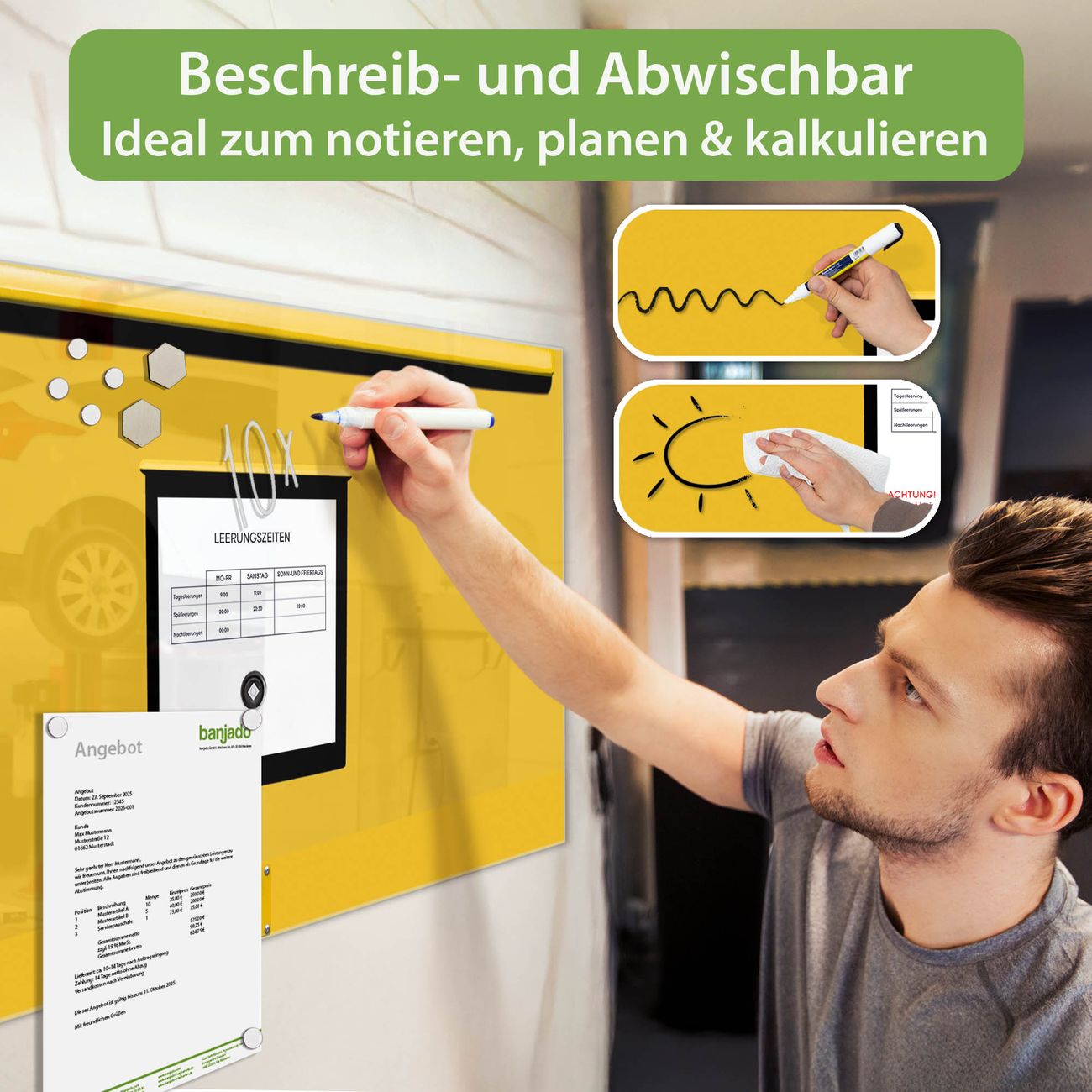Jede Glas Magnettafel wird in unserer Werkstatt von Hand gefertigt und sorgfältig geprüft. So erhalten Sie ein echtes Qualitätsprodukt, das Funktion und Ästhetik perfekt vereint.?? Warum banjado?