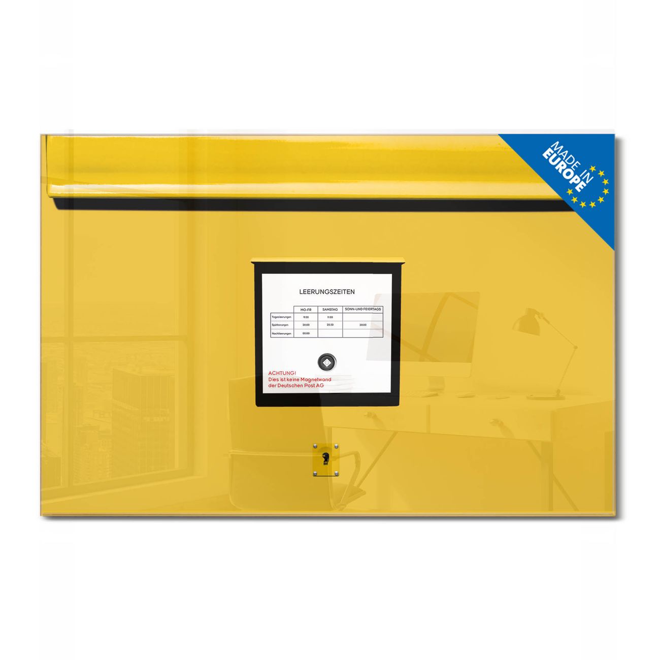 Glas Magnettafel im Querformat Motiv Briefkasten Gelb