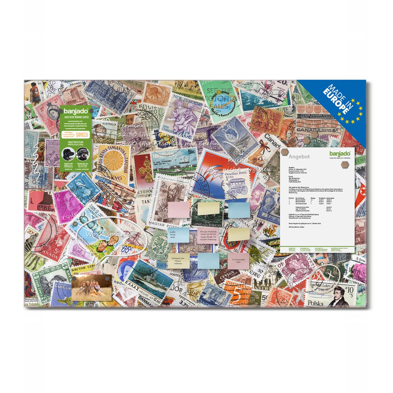 Glas Magnettafel im Querformat Motiv Briefmarken