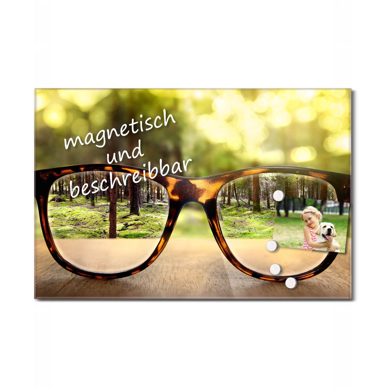 Glas Magnettafel im Querformat Motiv Brille