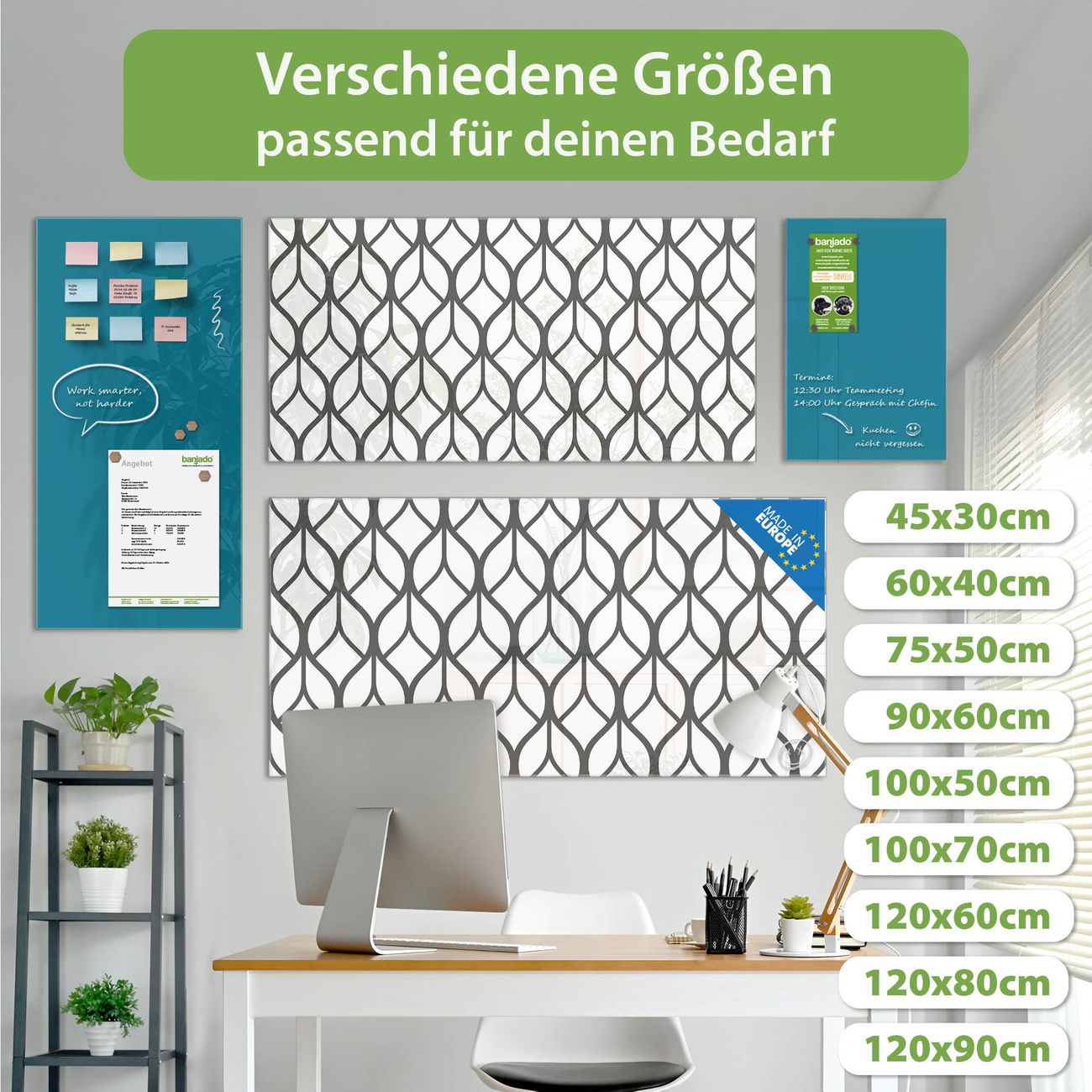Jede Glas Magnettafel wird in unserer Werkstatt von Hand gefertigt und sorgfältig geprüft. So erhalten Sie ein echtes Qualitätsprodukt, das Funktion und Ästhetik perfekt vereint.?? Warum banjado?