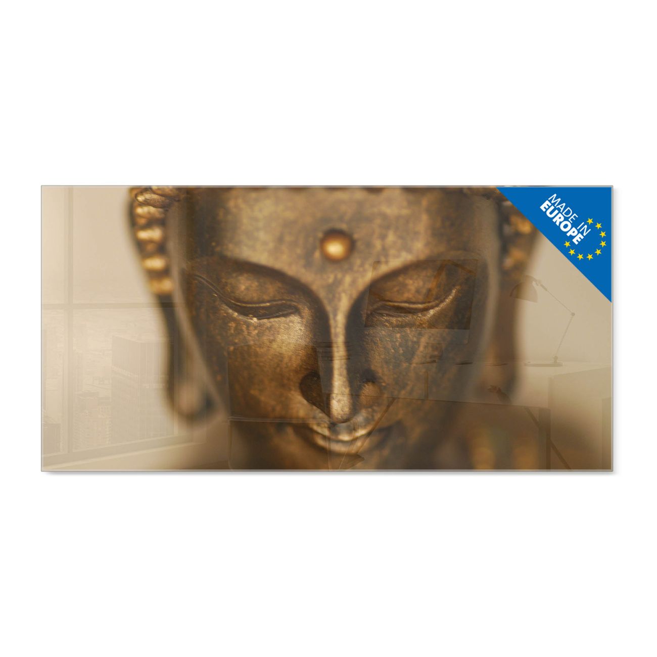 Glas Magnettafel im Querformat Motiv Buddha Gold