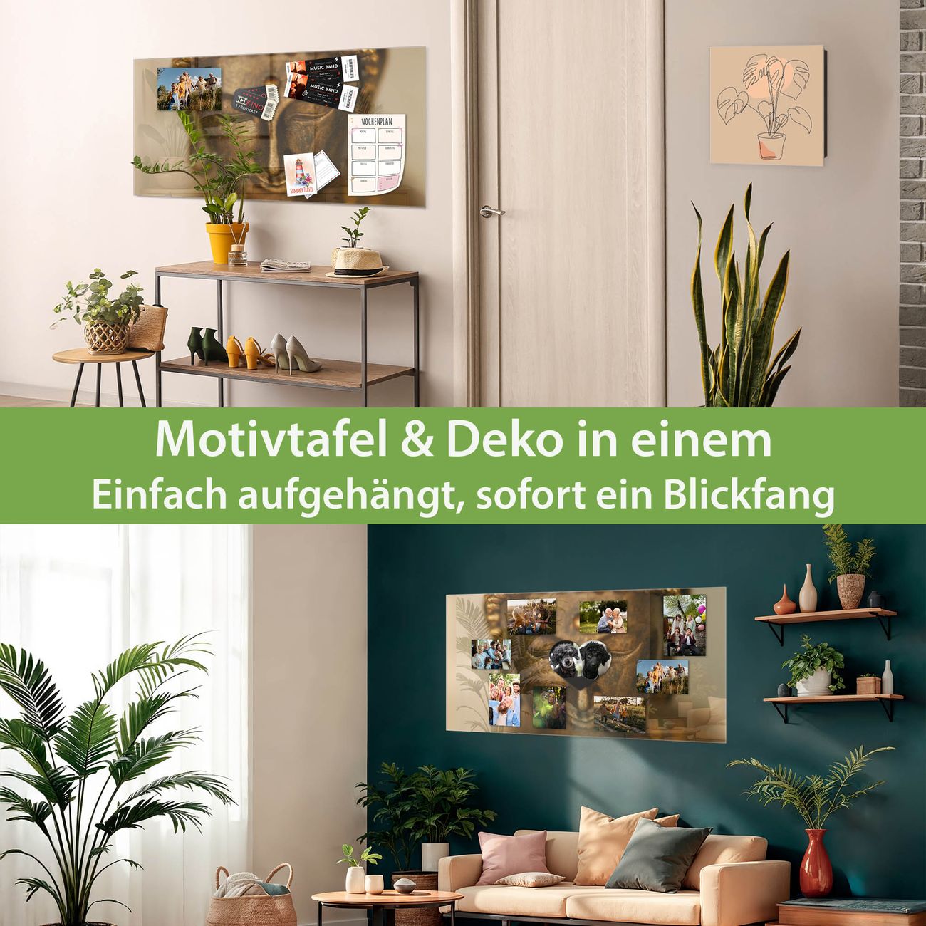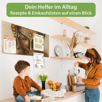 Die banjado Glas Magnettafel mit dem Motiv Motiv Buddha Gold verbindet Funktionalität mit Stil. Sie ersetzt das Zettelchaos durch klare Strukturen und bringt dabei eine warme, natürliche Atmosphäre in Ihr Zuhause. Ob im Büro, in der Küche oder im Eingangsbereich - dieses Design-Board zieht Blicke an und sorgt für Ordnung mit Charakter.
