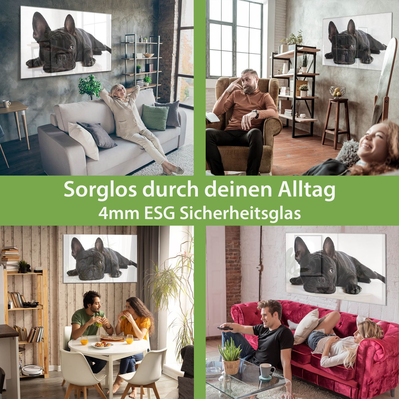- Material: 4mm Sicherheitsglas mit Metallrückwand