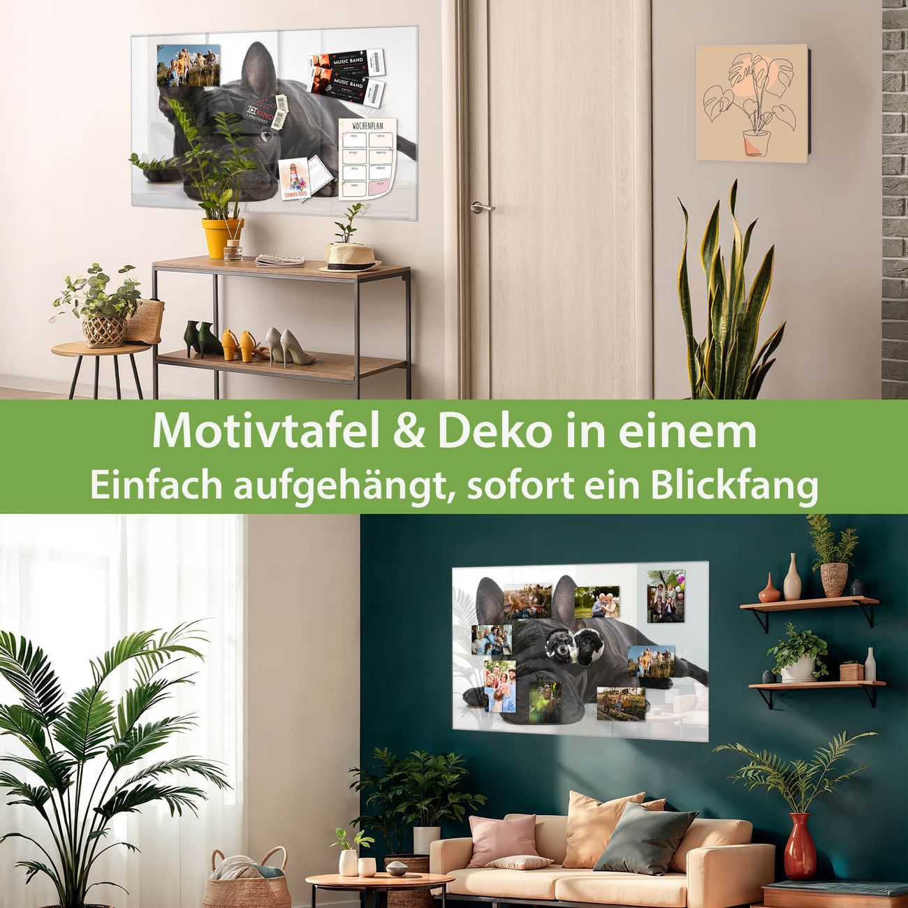 Dank der flachen Bauweise wirkt die Magnetwand fast schwebend an der Wand. Sie können sie mit Montagekleber elegant befestigen oder mit einem passenden Set klassisch verschrauben - beides sorgt für sicheren Halt und eine dezente Optik.