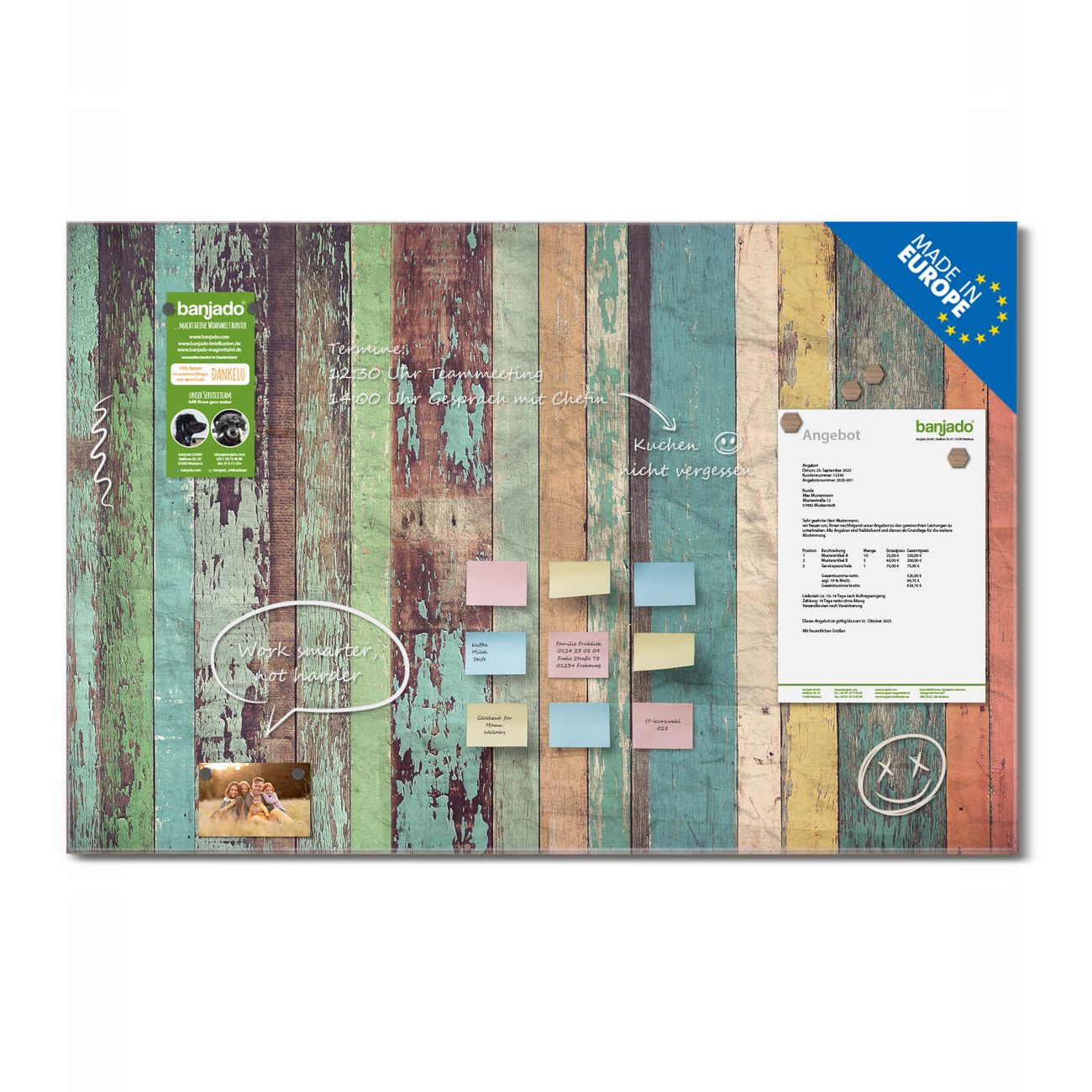 Glas Magnettafel im Querformat Motiv Bunte Bretterwand