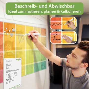 Die banjado Glas Magnettafel mit dem Motiv Motiv Bunte Glasbausteine verbindet Funktionalität mit Stil. Sie ersetzt das Zettelchaos durch klare Strukturen und bringt dabei eine warme, natürliche Atmosphäre in Ihr Zuhause. Ob im Büro, in der Küche oder im Eingangsbereich - dieses Design-Board zieht Blicke an und sorgt für Ordnung mit Charakter.