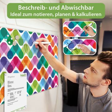Die banjado Glas Magnettafel mit dem Motiv Motiv Bunte Ketten verbindet Funktionalität mit Stil. Sie ersetzt das Zettelchaos durch klare Strukturen und bringt dabei eine warme, natürliche Atmosphäre in Ihr Zuhause. Ob im Büro, in der Küche oder im Eingangsbereich - dieses Design-Board zieht Blicke an und sorgt für Ordnung mit Charakter.