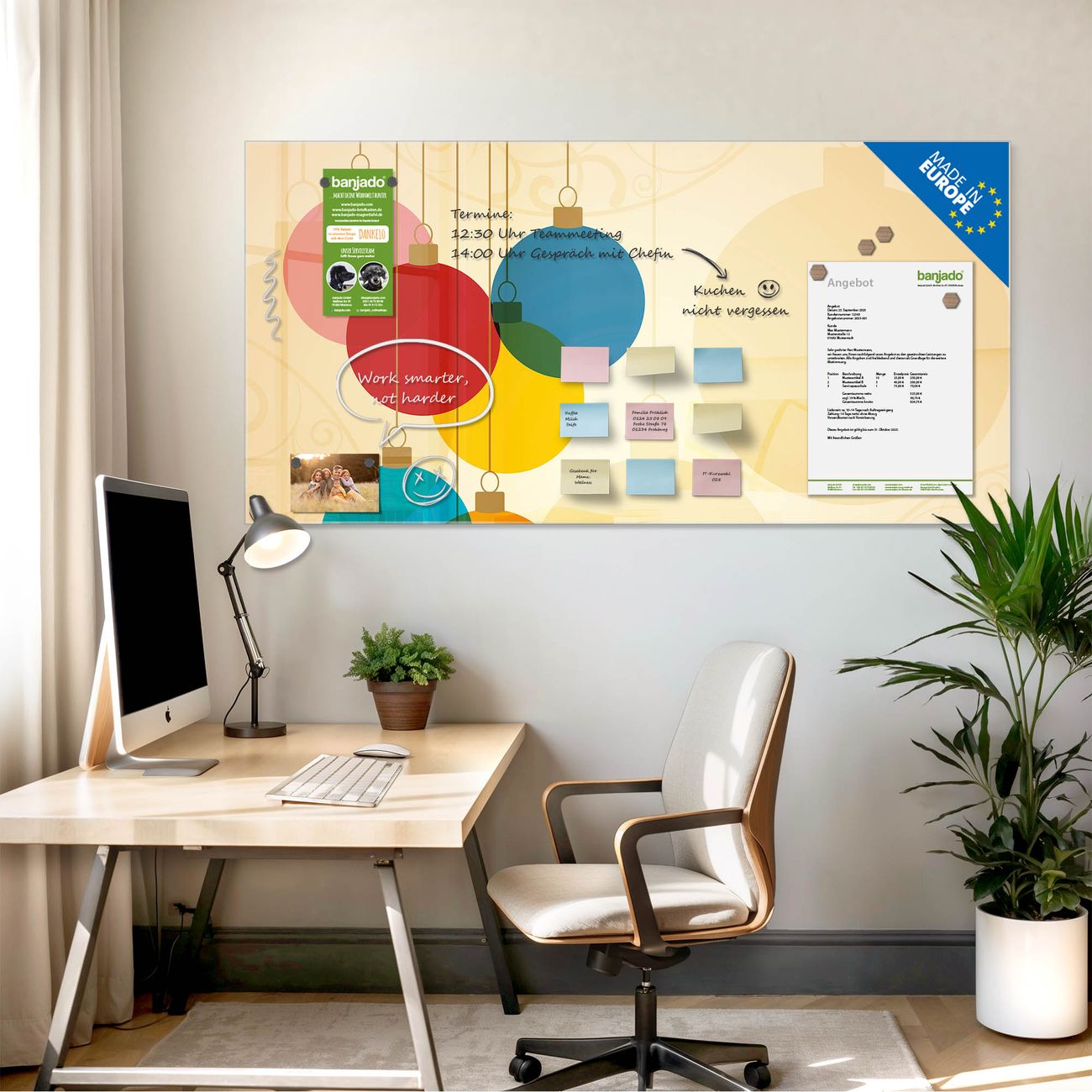 Die banjado Glas Magnettafel mit dem Motiv Motiv Bunte Kugeln verbindet Funktionalität mit Stil. Sie ersetzt das Zettelchaos durch klare Strukturen und bringt dabei eine warme, natürliche Atmosphäre in Ihr Zuhause. Ob im Büro, in der Küche oder im Eingangsbereich - dieses Design-Board zieht Blicke an und sorgt für Ordnung mit Charakter.