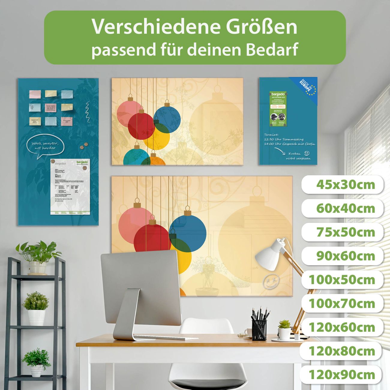 Jede Glas Magnettafel wird in unserer Werkstatt von Hand gefertigt und sorgfältig geprüft. So erhalten Sie ein echtes Qualitätsprodukt, das Funktion und Ästhetik perfekt vereint.?? Warum banjado?