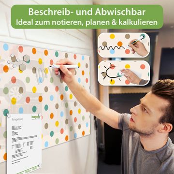 Die banjado Glas Magnettafel mit dem Motiv Motiv Bunte Punkte verbindet Funktionalität mit Stil. Sie ersetzt das Zettelchaos durch klare Strukturen und bringt dabei eine warme, natürliche Atmosphäre in Ihr Zuhause. Ob im Büro, in der Küche oder im Eingangsbereich - dieses Design-Board zieht Blicke an und sorgt für Ordnung mit Charakter.