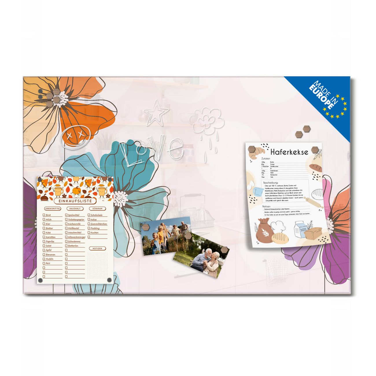 Glas Magnettafel im Querformat Motiv Bunter Mohn