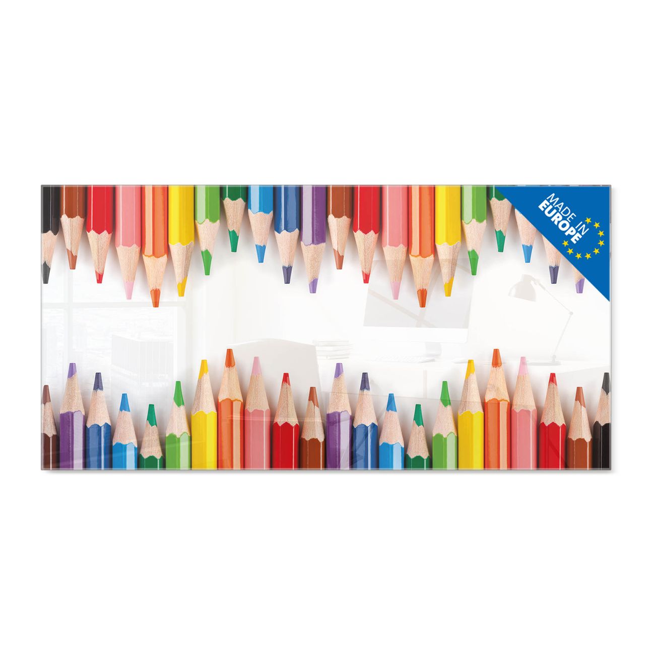 Glas Magnettafel im Querformat Motiv Buntstifte