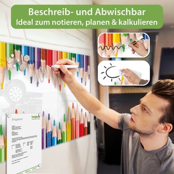Ein Stück Design, das Ihren Alltag organisiert. Schreiben, heften, inspirieren - alles an einem Ort. Qualität, die man spürt. Montage leicht gemacht. Handwerk mit Herz - veredelt in Sachsen. Einzigartiges Design mit Motiv Motiv Buntstifte Beschreibbare Glasoberfläche, leicht zu reinigen Starke Magnetkraft durch Stahlrückwand Inklusive 4 Neodym-Magneten Flexible Montageoptionen Handveredelt in Sachsen - Qualität, die bleibt