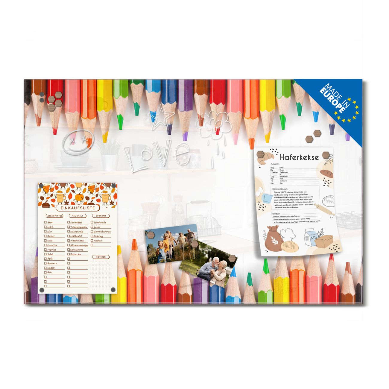 Glas Magnettafel im Querformat Motiv Buntstifte
