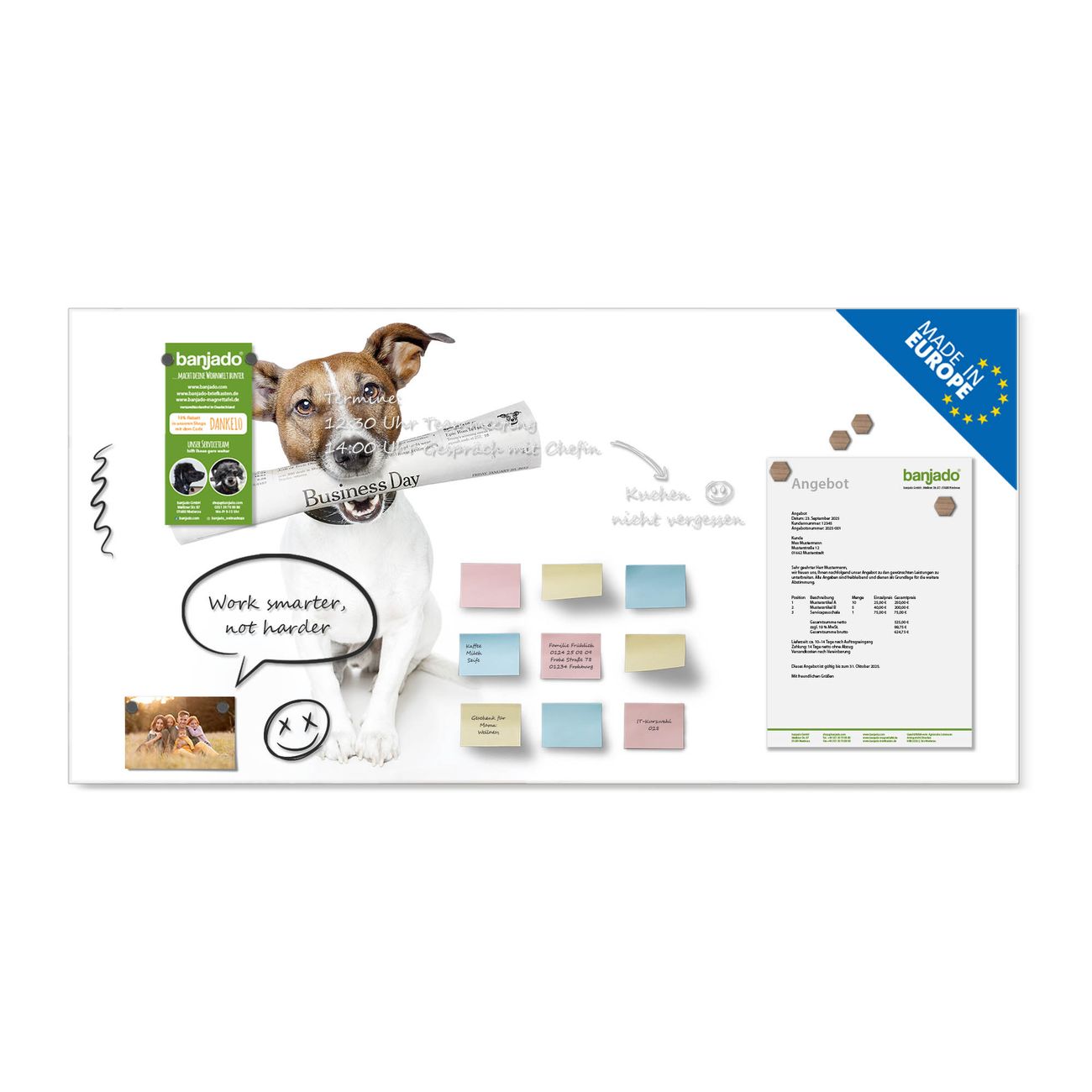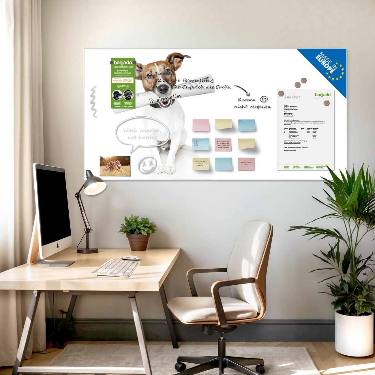 Jede Glas Magnettafel wird in unserer Werkstatt von Hand gefertigt und sorgfältig geprüft. So erhalten Sie ein echtes Qualitätsprodukt, das Funktion und Ästhetik perfekt vereint.?? Warum banjado?