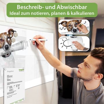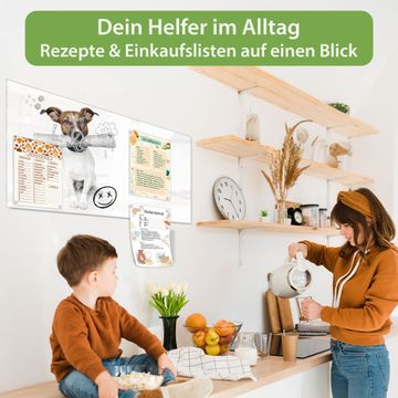 Auf der glatten Glasoberfläche lassen sich Termine, Rezepte oder Notizen ganz einfach mit Kreidestiften festhalten und rückstandslos entfernen. Starke Neodym-Magnete halten Ihre wichtigsten Erinnerungen sicher an Ort und Stelle. So entsteht Ihre ganz persönliche Ideenwand - jeden Tag neu.