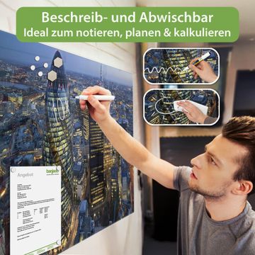 Die banjado Glas Magnettafel mit dem Motiv Motiv City Of London verbindet Funktionalität mit Stil. Sie ersetzt das Zettelchaos durch klare Strukturen und bringt dabei eine warme, natürliche Atmosphäre in Ihr Zuhause. Ob im Büro, in der Küche oder im Eingangsbereich - dieses Design-Board zieht Blicke an und sorgt für Ordnung mit Charakter.
