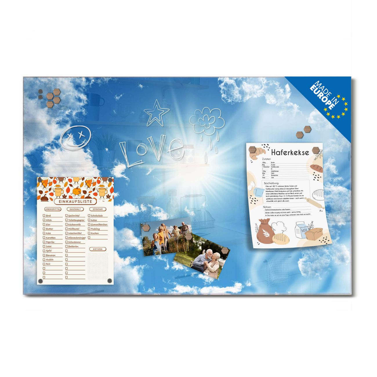 Ein Stück Design, das Ihren Alltag organisiert. Schreiben, heften, inspirieren - alles an einem Ort. Qualität, die man spürt. Montage leicht gemacht. Handwerk mit Herz - veredelt in Sachsen. Einzigartiges Design mit Motiv Motiv Clouds Beschreibbare Glasoberfläche, leicht zu reinigen Starke Magnetkraft durch Stahlrückwand Inklusive 4 Neodym-Magneten Flexible Montageoptionen Handveredelt in Sachsen - Qualität, die bleibt