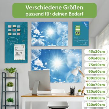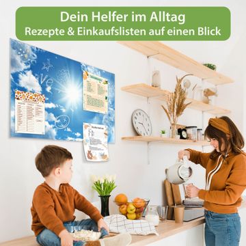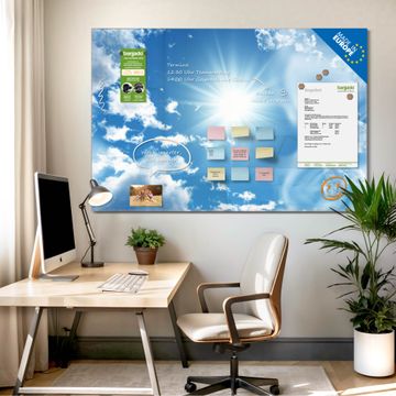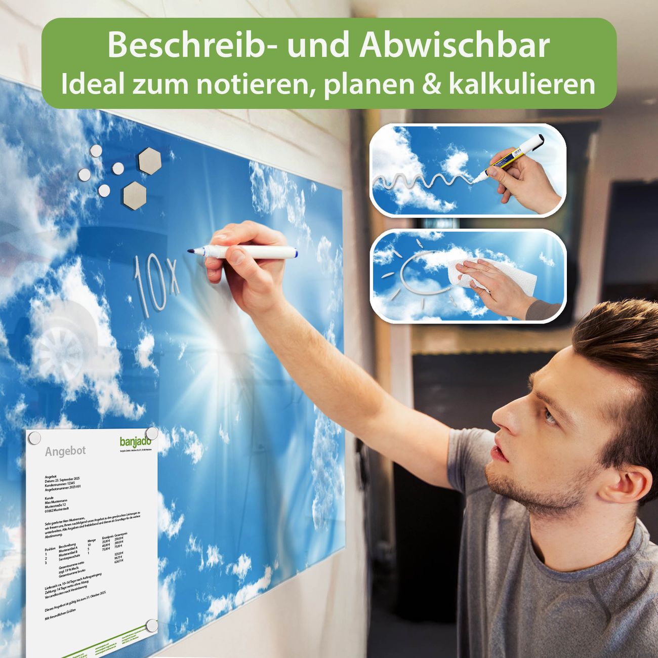 Die banjado Glas Magnettafel mit dem Motiv Motiv Clouds verbindet Funktionalität mit Stil. Sie ersetzt das Zettelchaos durch klare Strukturen und bringt dabei eine warme, natürliche Atmosphäre in Ihr Zuhause. Ob im Büro, in der Küche oder im Eingangsbereich - dieses Design-Board zieht Blicke an und sorgt für Ordnung mit Charakter.