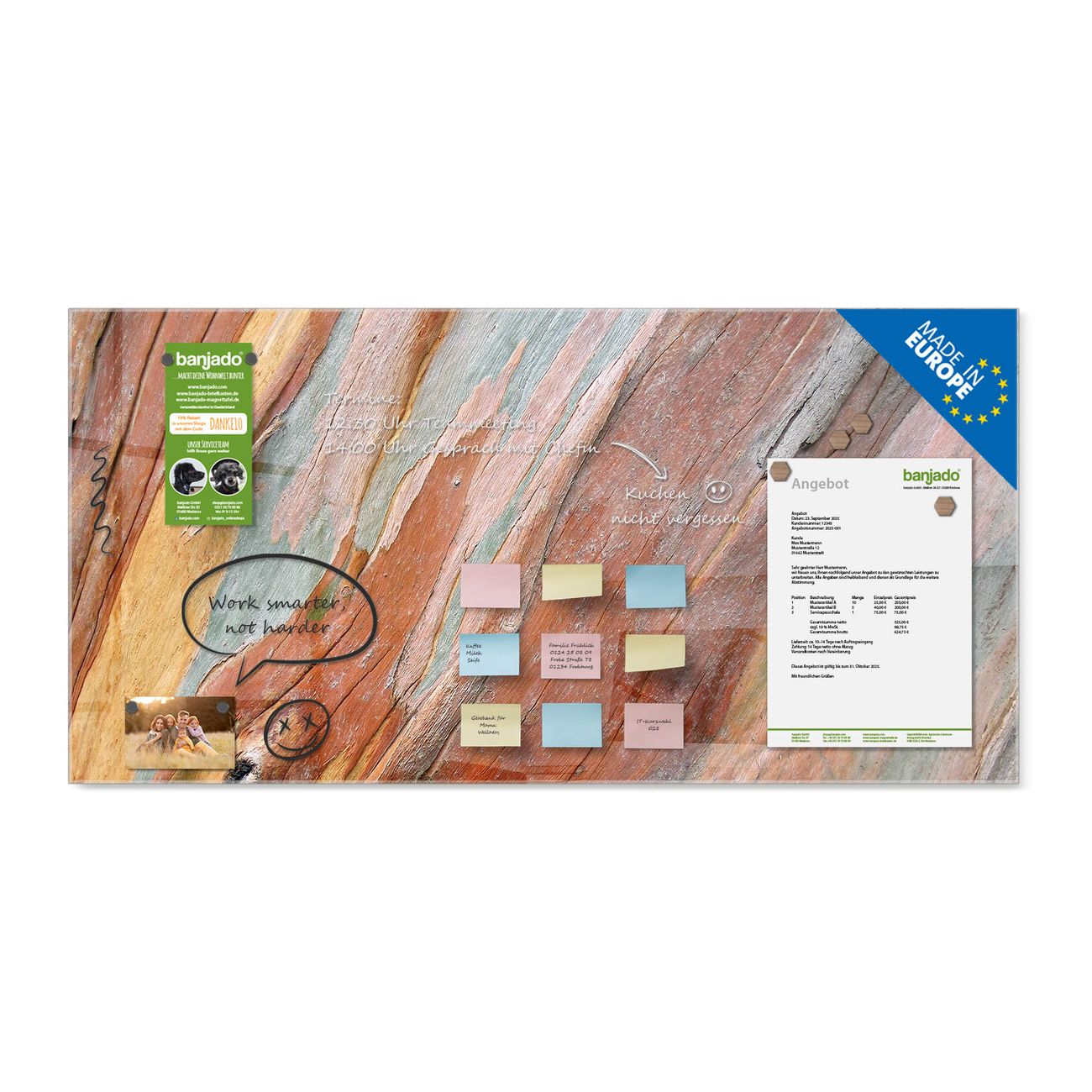 Ein Stück Design, das Ihren Alltag organisiert. Schreiben, heften, inspirieren - alles an einem Ort. Qualität, die man spürt. Montage leicht gemacht. Handwerk mit Herz - veredelt in Sachsen. Einzigartiges Design mit Motiv Motiv Coloured Wood Beschreibbare Glasoberfläche, leicht zu reinigen Starke Magnetkraft durch Stahlrückwand Inklusive 4 Neodym-Magneten Flexible Montageoptionen Handveredelt in Sachsen - Qualität, die bleibt