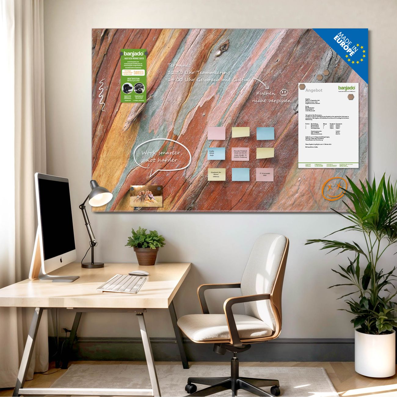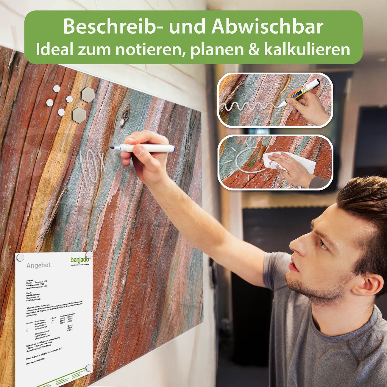 Die banjado Glas Magnettafel mit dem Motiv Motiv Coloured Wood verbindet Funktionalität mit Stil. Sie ersetzt das Zettelchaos durch klare Strukturen und bringt dabei eine warme, natürliche Atmosphäre in Ihr Zuhause. Ob im Büro, in der Küche oder im Eingangsbereich - dieses Design-Board zieht Blicke an und sorgt für Ordnung mit Charakter.