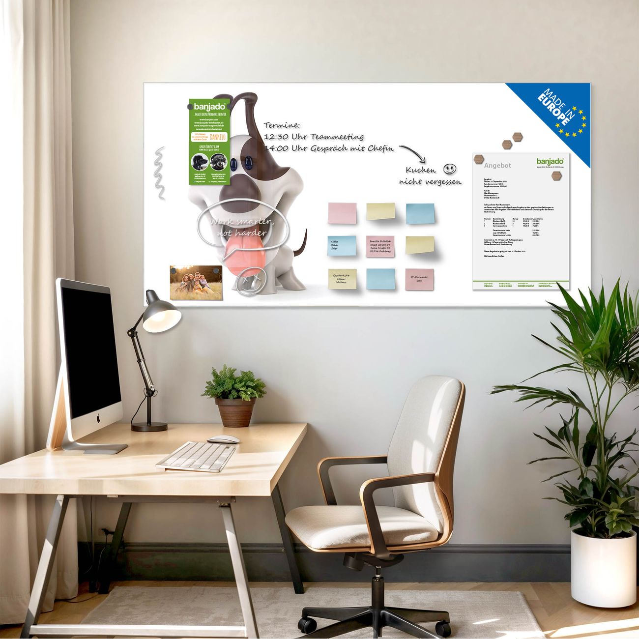 Jede Glas Magnettafel wird in unserer Werkstatt von Hand gefertigt und sorgfältig geprüft. So erhalten Sie ein echtes Qualitätsprodukt, das Funktion und Ästhetik perfekt vereint.?? Warum banjado?