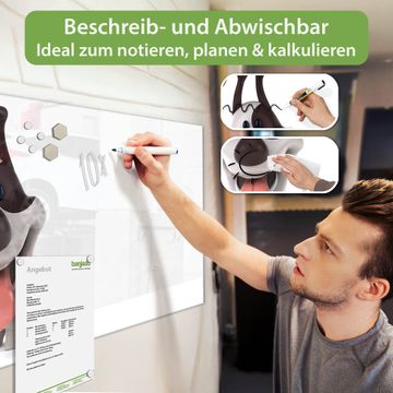 Gefertigt aus gehärtetem Sicherheitsglas mit einer magnetischen Rückwand aus Stahl überzeugt diese Magnettafel durch Stabilität und Langlebigkeit. Die Oberfläche bleibt dauerhaft brillant und pflegeleicht, selbst bei täglicher Nutzung.