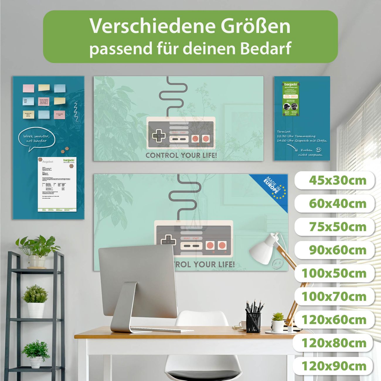 Glas Magnettafel im Querformat Motiv Control