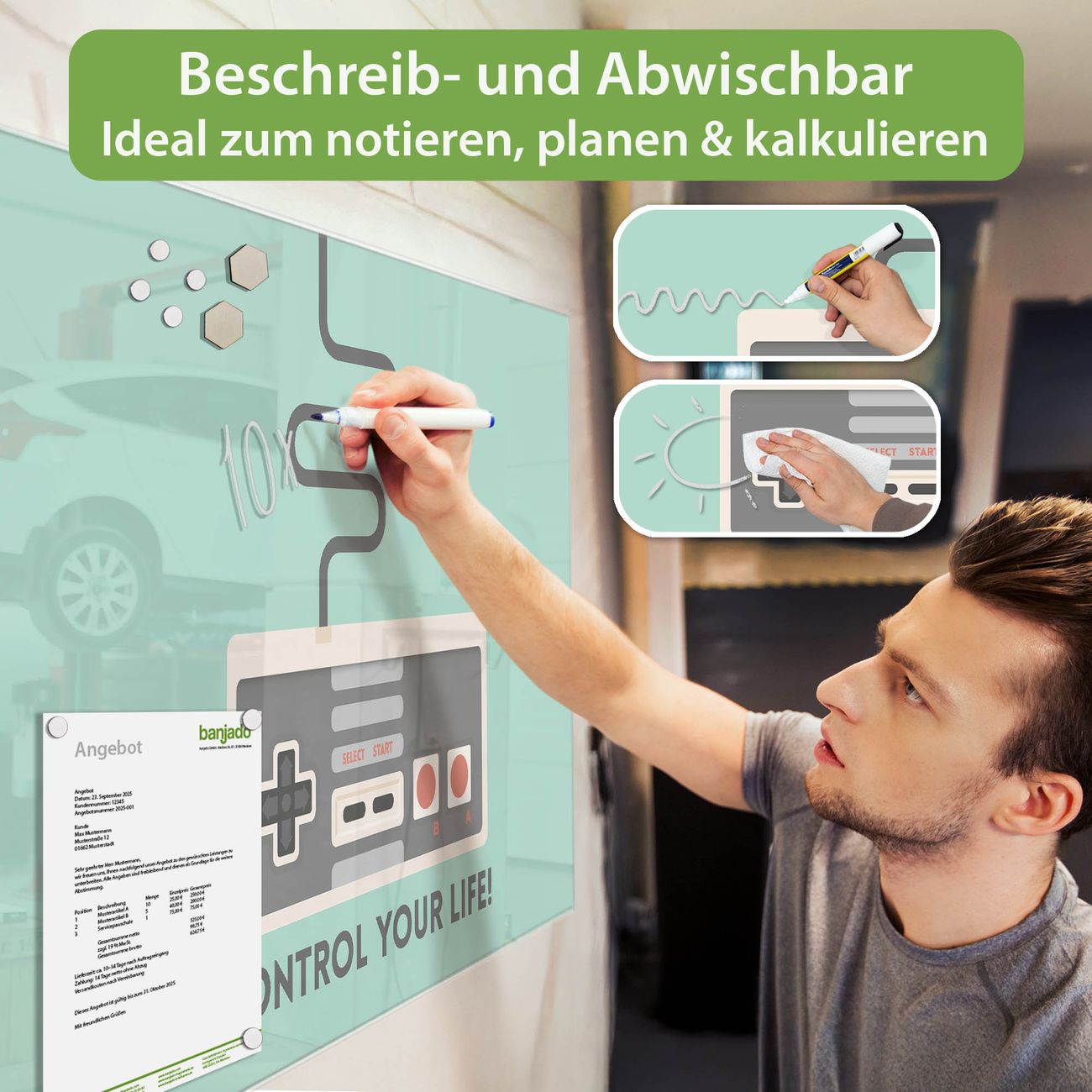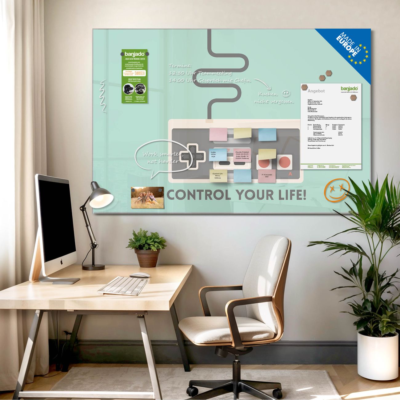 Die banjado Glas Magnettafel mit dem Motiv Motiv Control verbindet Funktionalität mit Stil. Sie ersetzt das Zettelchaos durch klare Strukturen und bringt dabei eine warme, natürliche Atmosphäre in Ihr Zuhause. Ob im Büro, in der Küche oder im Eingangsbereich - dieses Design-Board zieht Blicke an und sorgt für Ordnung mit Charakter.