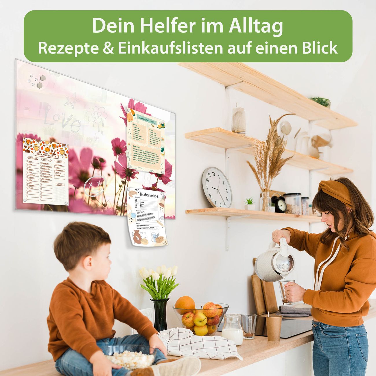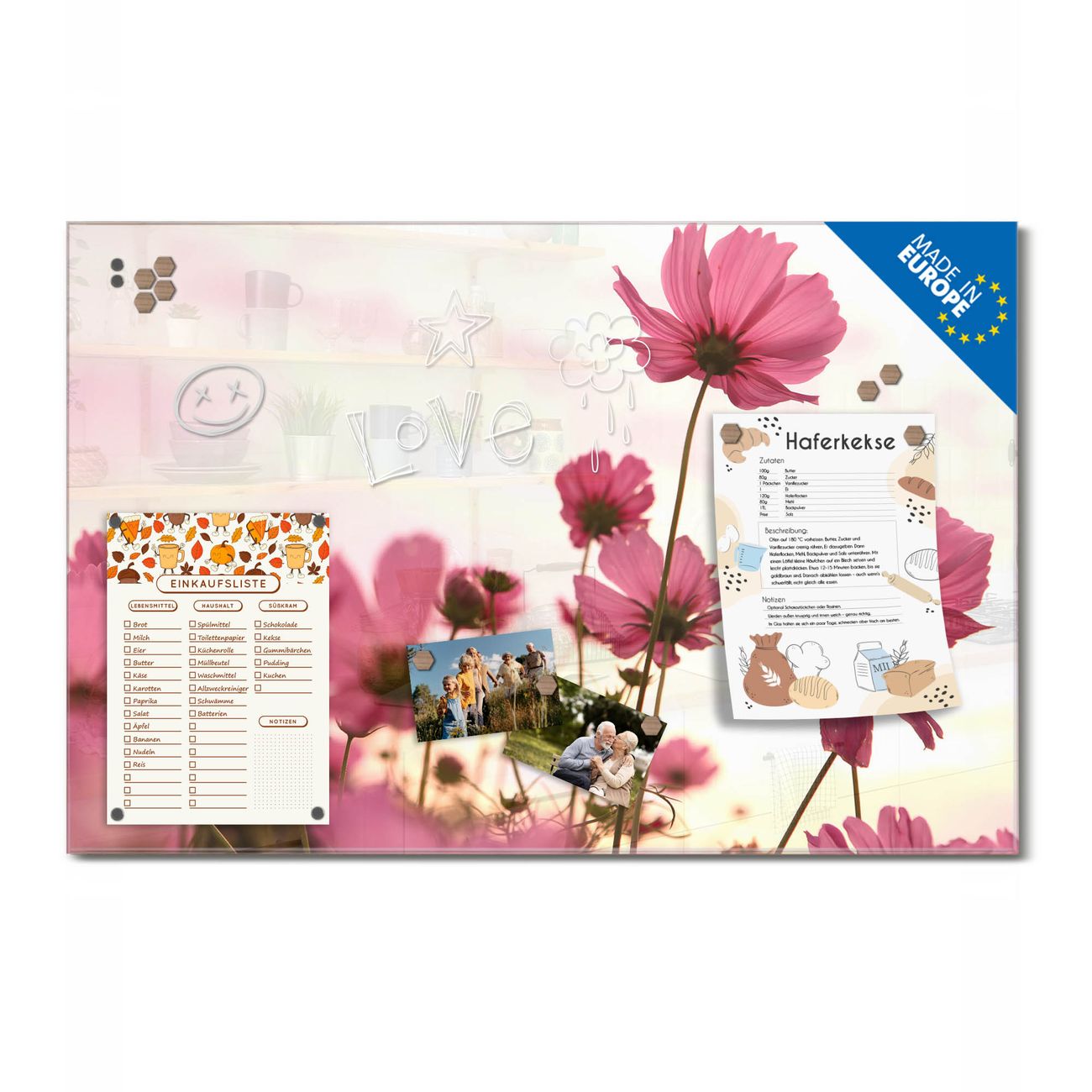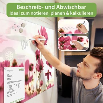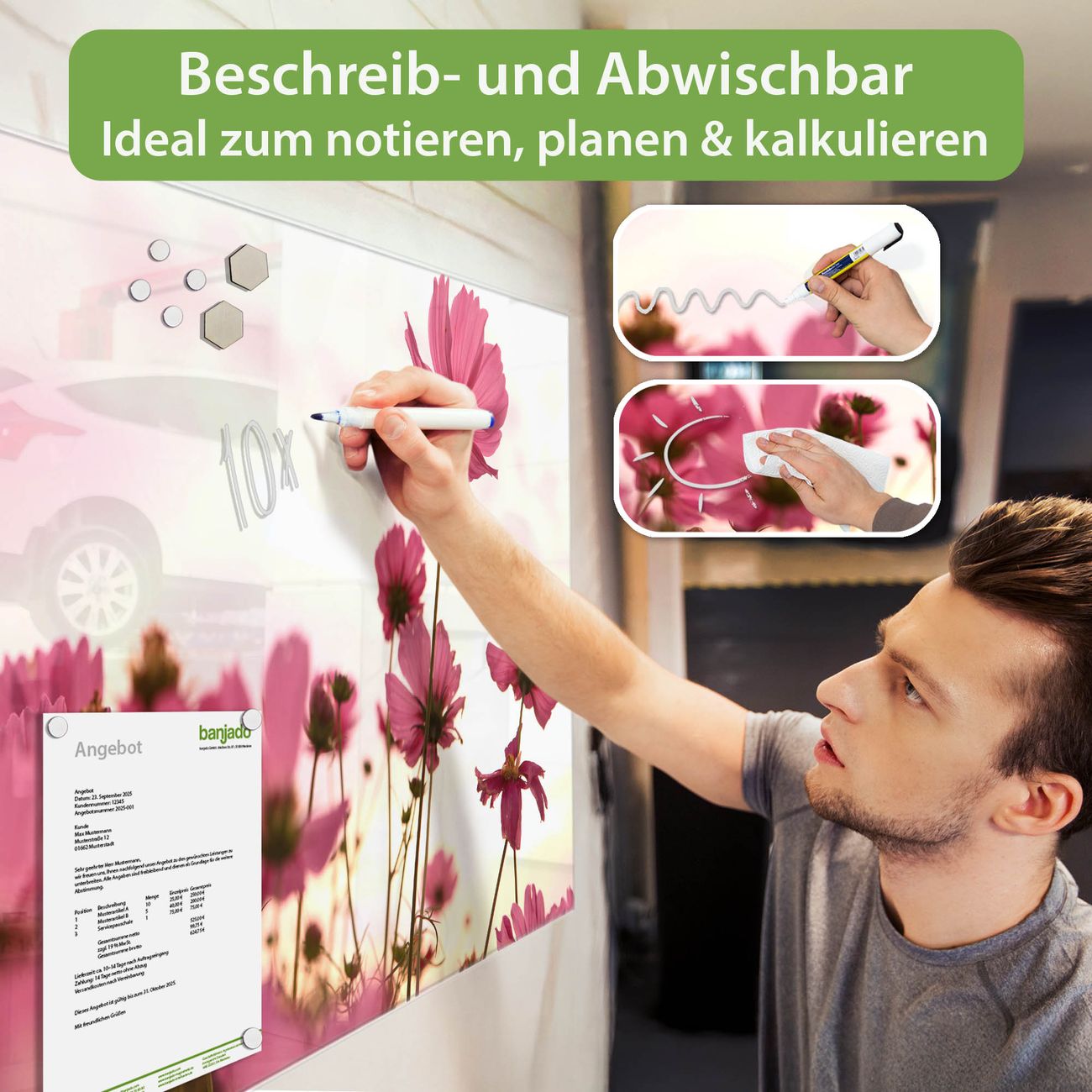 Die banjado Glas Magnettafel mit dem Motiv Motiv Cosmea verbindet Funktionalität mit Stil. Sie ersetzt das Zettelchaos durch klare Strukturen und bringt dabei eine warme, natürliche Atmosphäre in Ihr Zuhause. Ob im Büro, in der Küche oder im Eingangsbereich - dieses Design-Board zieht Blicke an und sorgt für Ordnung mit Charakter.