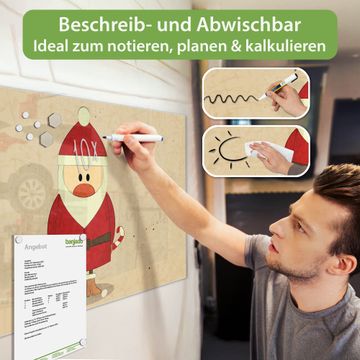 Die banjado Glas Magnettafel mit dem Motiv Motiv Cute Claus verbindet Funktionalität mit Stil. Sie ersetzt das Zettelchaos durch klare Strukturen und bringt dabei eine warme, natürliche Atmosphäre in Ihr Zuhause. Ob im Büro, in der Küche oder im Eingangsbereich - dieses Design-Board zieht Blicke an und sorgt für Ordnung mit Charakter.