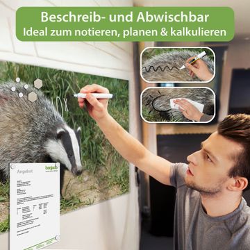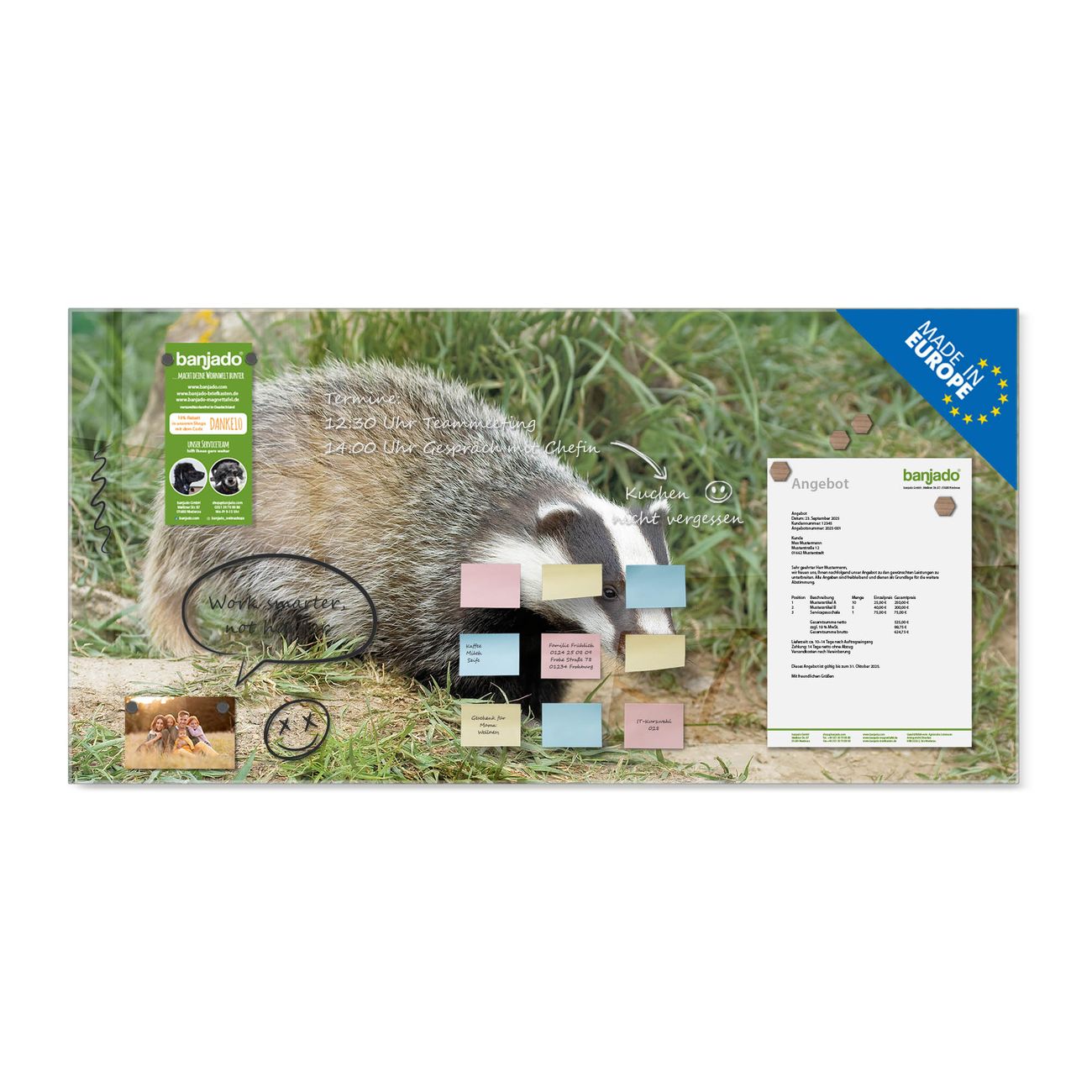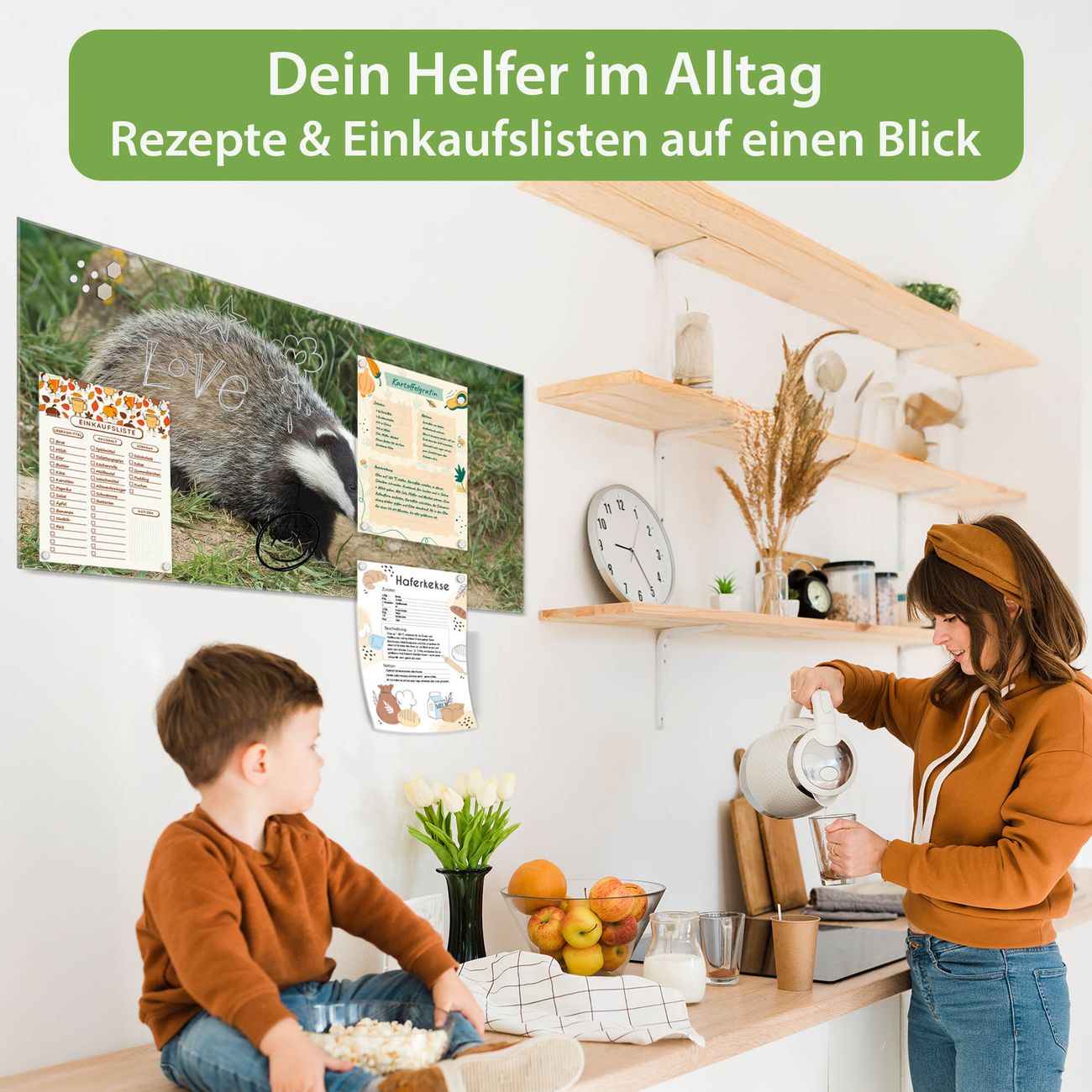 Die banjado Glas Magnettafel mit dem Motiv Motiv Dachs verbindet Funktionalität mit Stil. Sie ersetzt das Zettelchaos durch klare Strukturen und bringt dabei eine warme, natürliche Atmosphäre in Ihr Zuhause. Ob im Büro, in der Küche oder im Eingangsbereich - dieses Design-Board zieht Blicke an und sorgt für Ordnung mit Charakter.