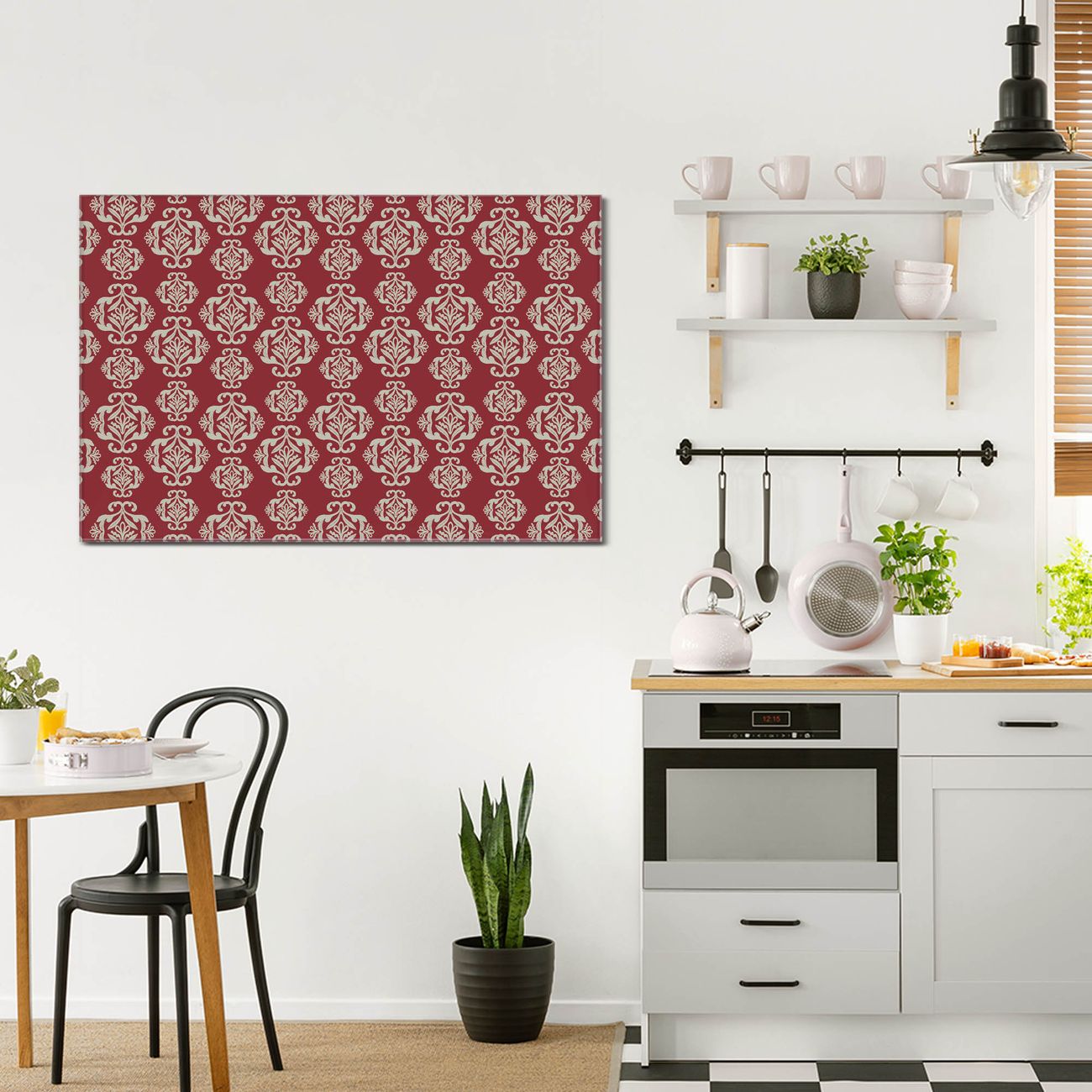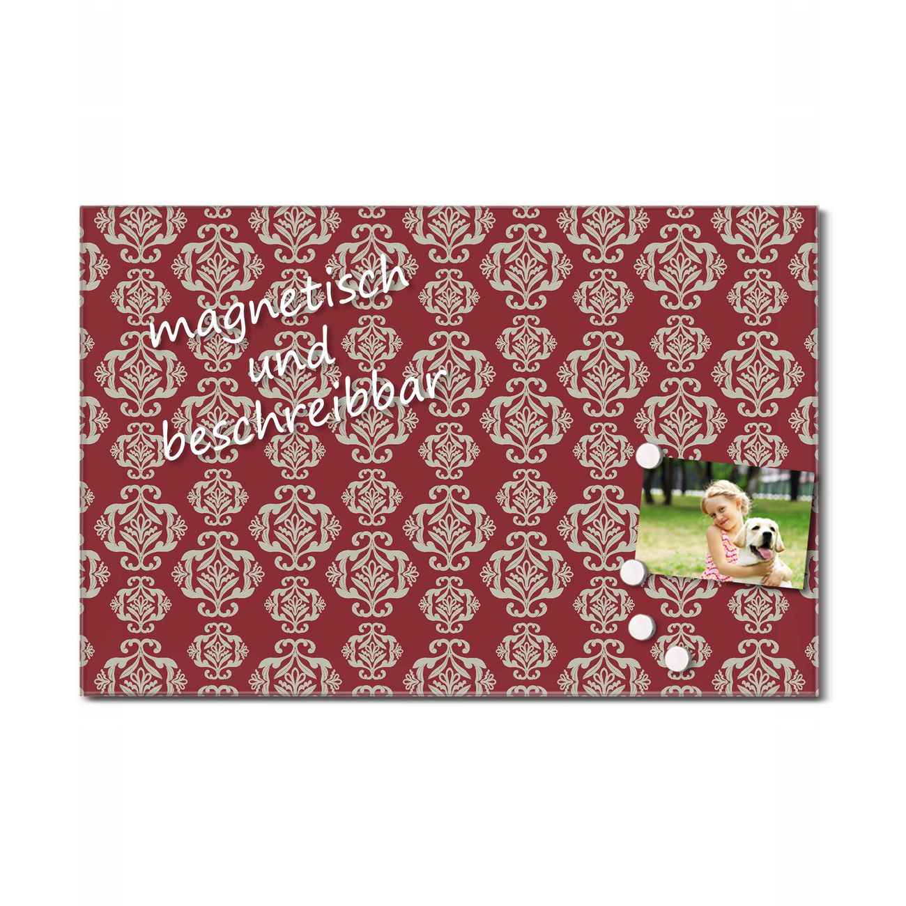 Glas Magnettafel im Querformat Damast Rot 3